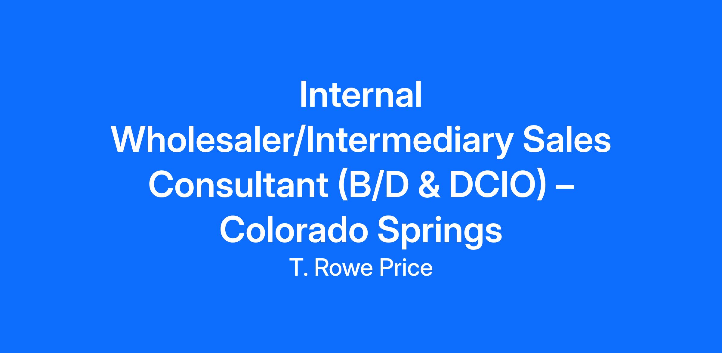 Community / Marketing Title: Internal Wholesaler/Intermediary Sales Consultant (B/D & DCIO) – Colorado Springs