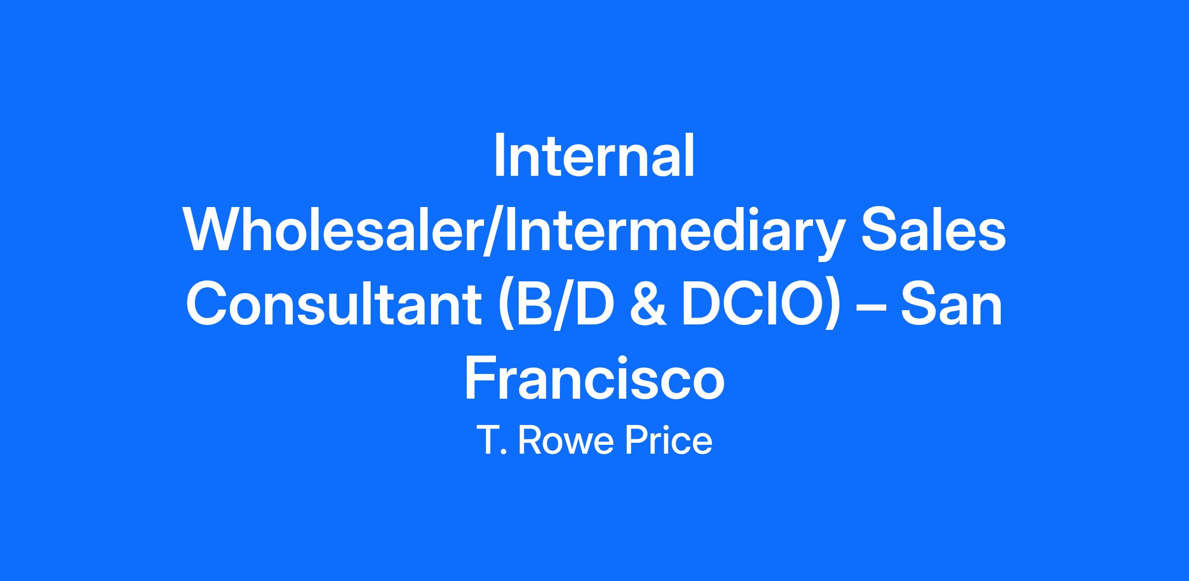 Community / Marketing Title: Internal Wholesaler/Intermediary Sales Consultant (B/D & DCIO) – San Francisco
