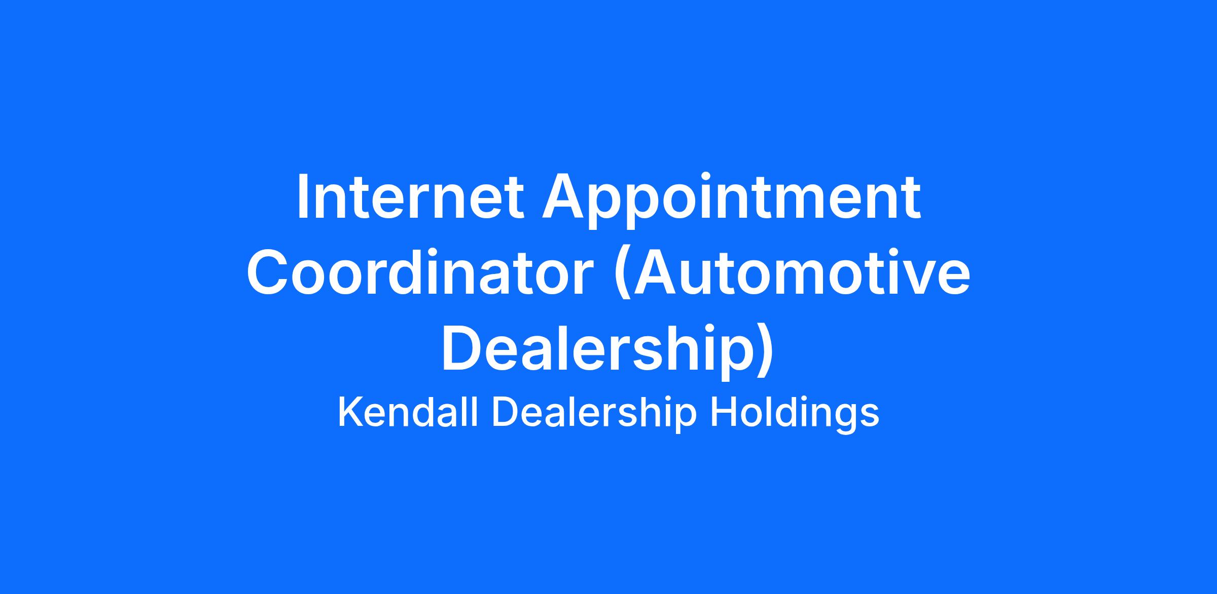 Kendall Auto Group is one of the largest family owned and operated dealers in the Pacific Northwest and premier employer in the Treasure Valley. We are seeking a highly organized and customer-focused Internet Appointment Coordinator to support our dealership's Business Development Center and Sales teams.