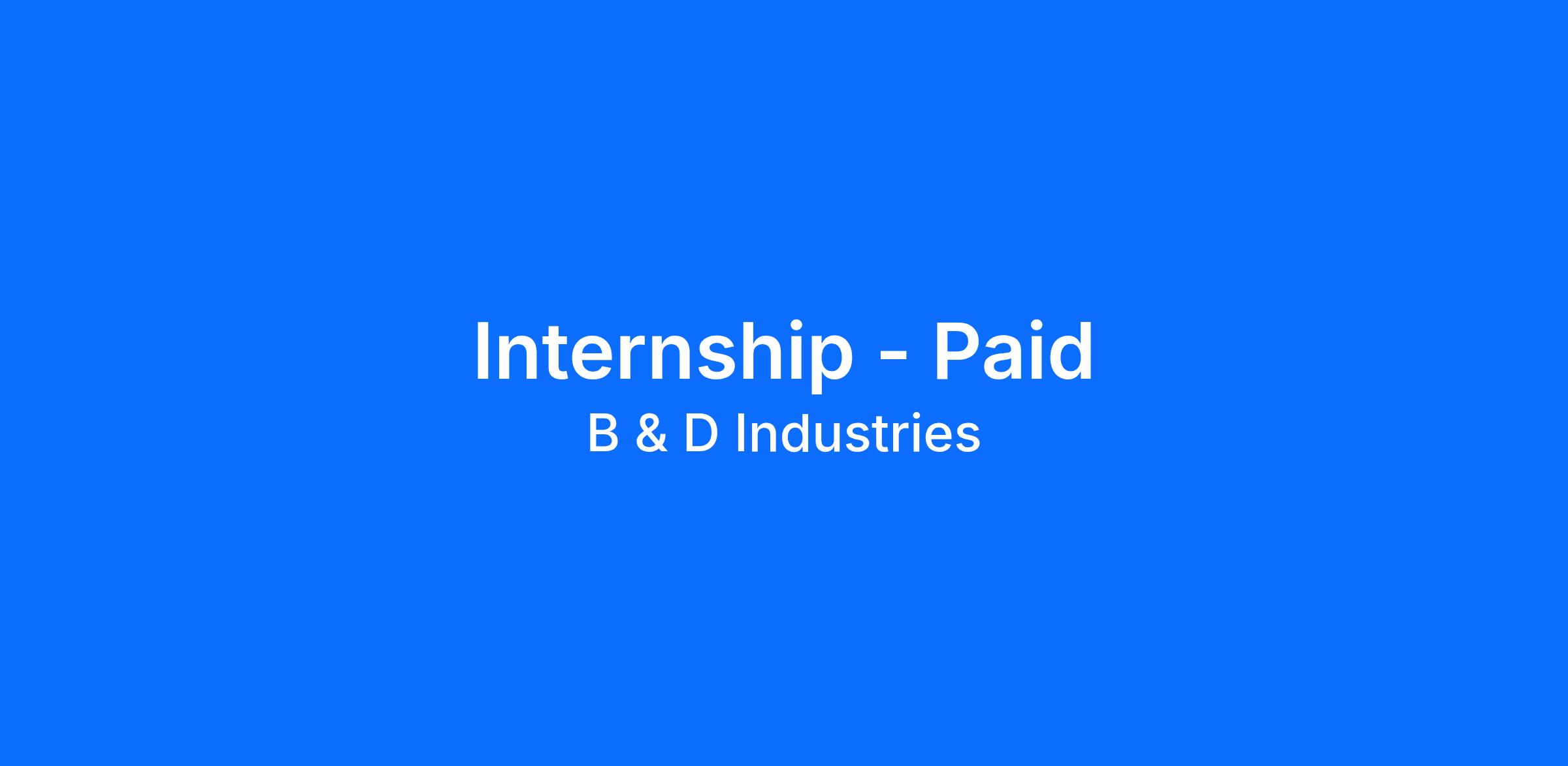B&D Industries, Inc.’s paid internship program gives you a chance to work alongside some of the most experienced professionals in the industry. Whether you are a new graduate or still in college, we may have internship opportunities that suit your professional goals. You’ll be working hands on gaining valuable education and experience to make a smooth transition into the construction industry. B&D is committed to strengthening your skills and helping shape your future, both personally and professionally.