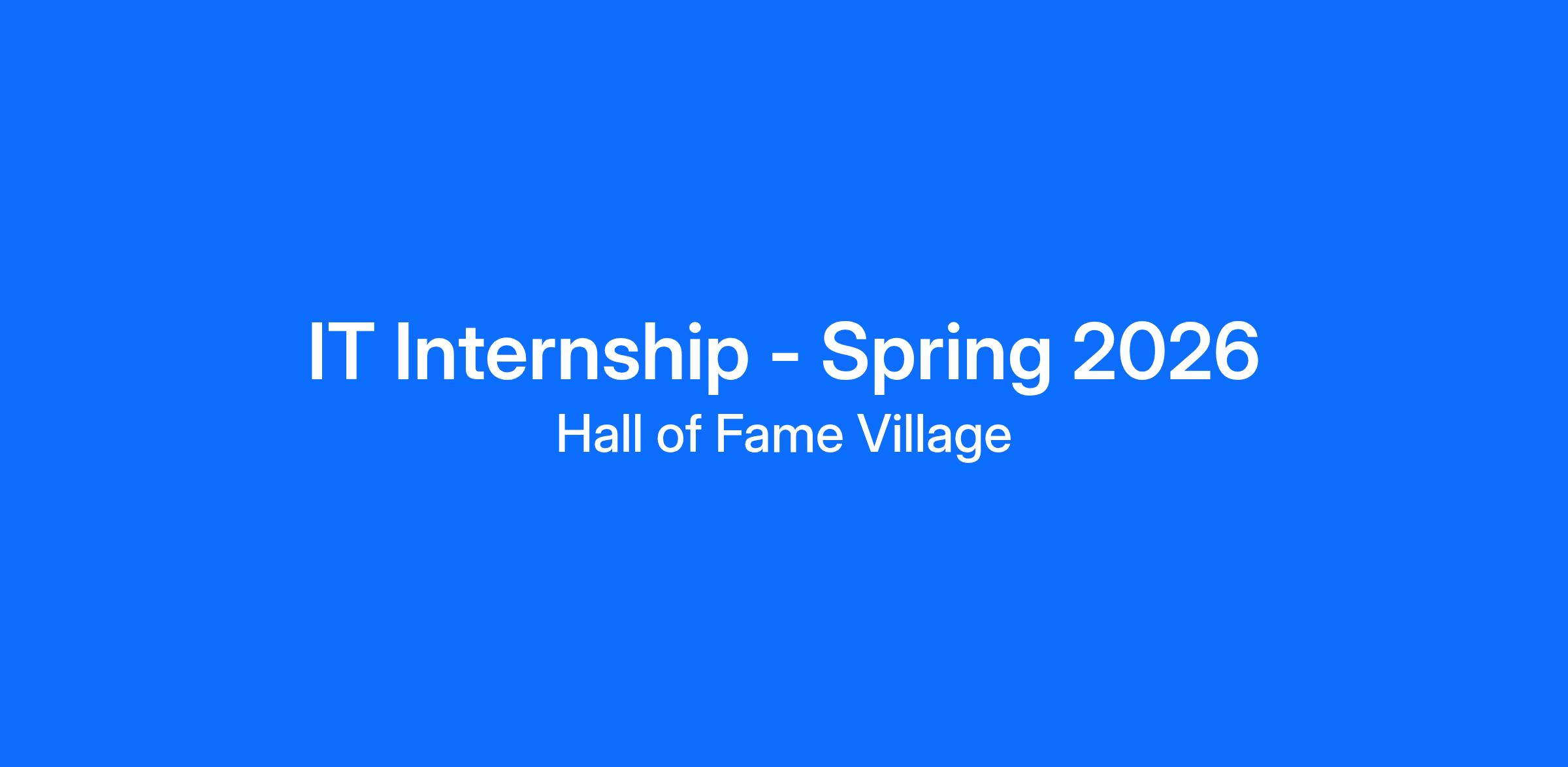The Information Technology Intern will work alongside our IT team at the Hall of Fame Village.