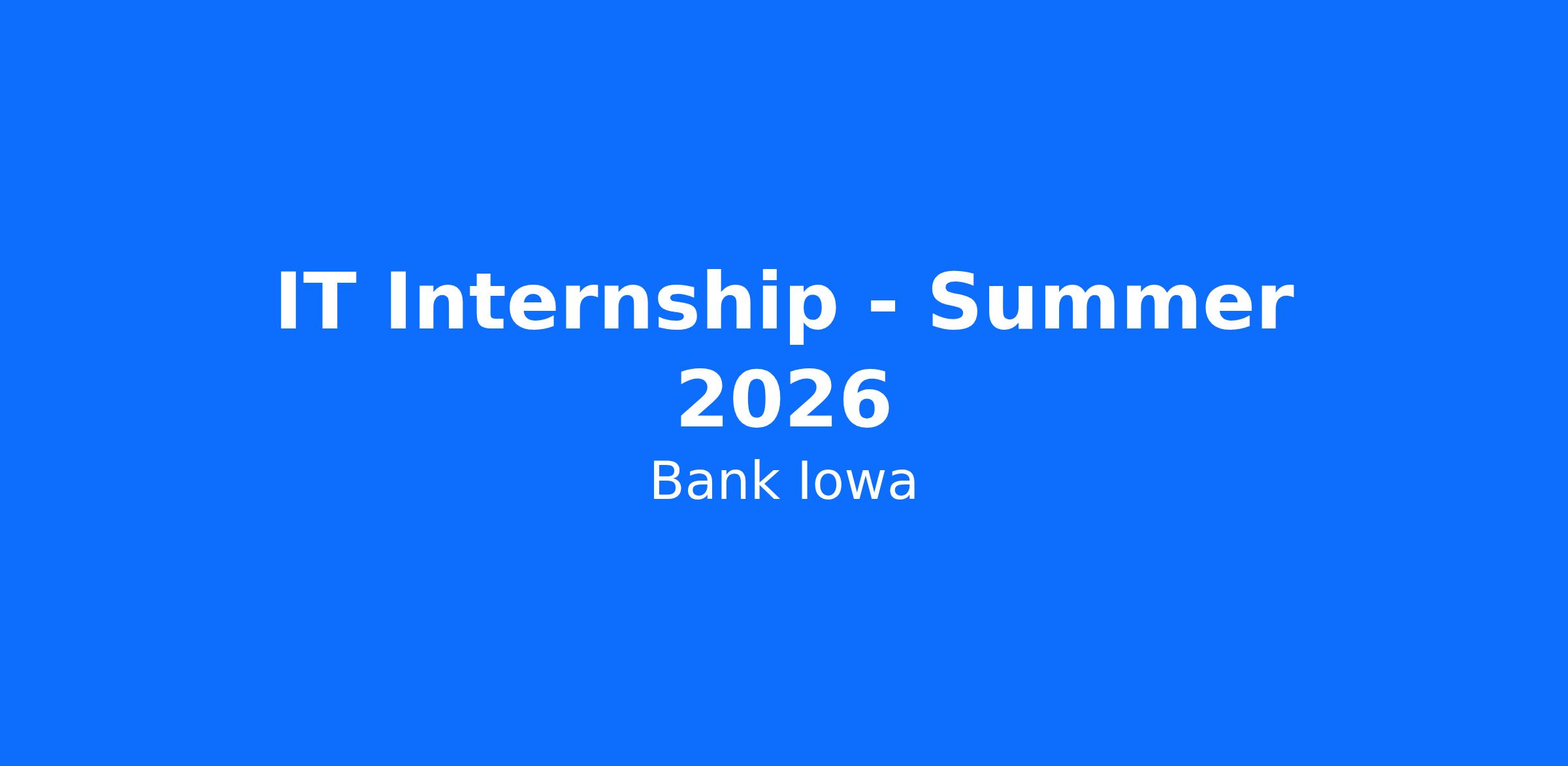 The Bank Iowa Information Technology team is a dedicated group of professionals who work very closely with all branches and departments in our organization. The Information Technology intern will assist IT team staff in technical support duties, as well as implementing solutions, tracking hardware and software inventory, assisting IT and other departments with technology requests via the IT service desk, and training Bank Iowa staff on new and existing solutions.