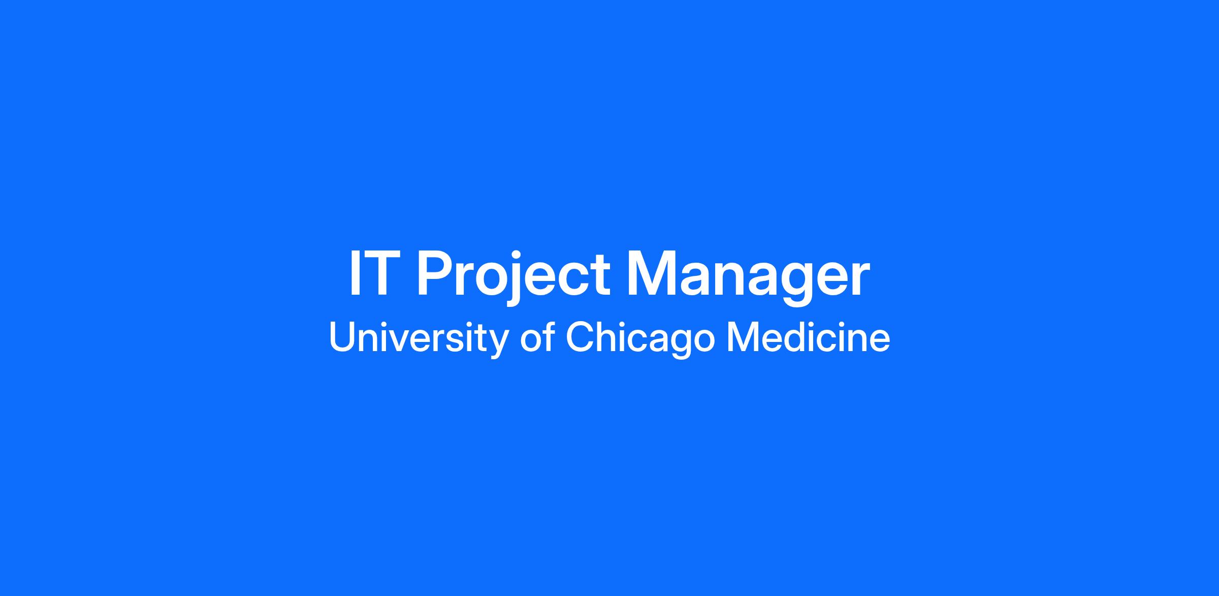 Join one of the nation’s most comprehensive academic medical centers, UChicago Medicine, as an IT Project Manager. This position will be primarily a work-from-home opportunity with the requirement to come onsite to our site locations around Chicagoland as needed. You will need to be based in the greater Chicagoland area.