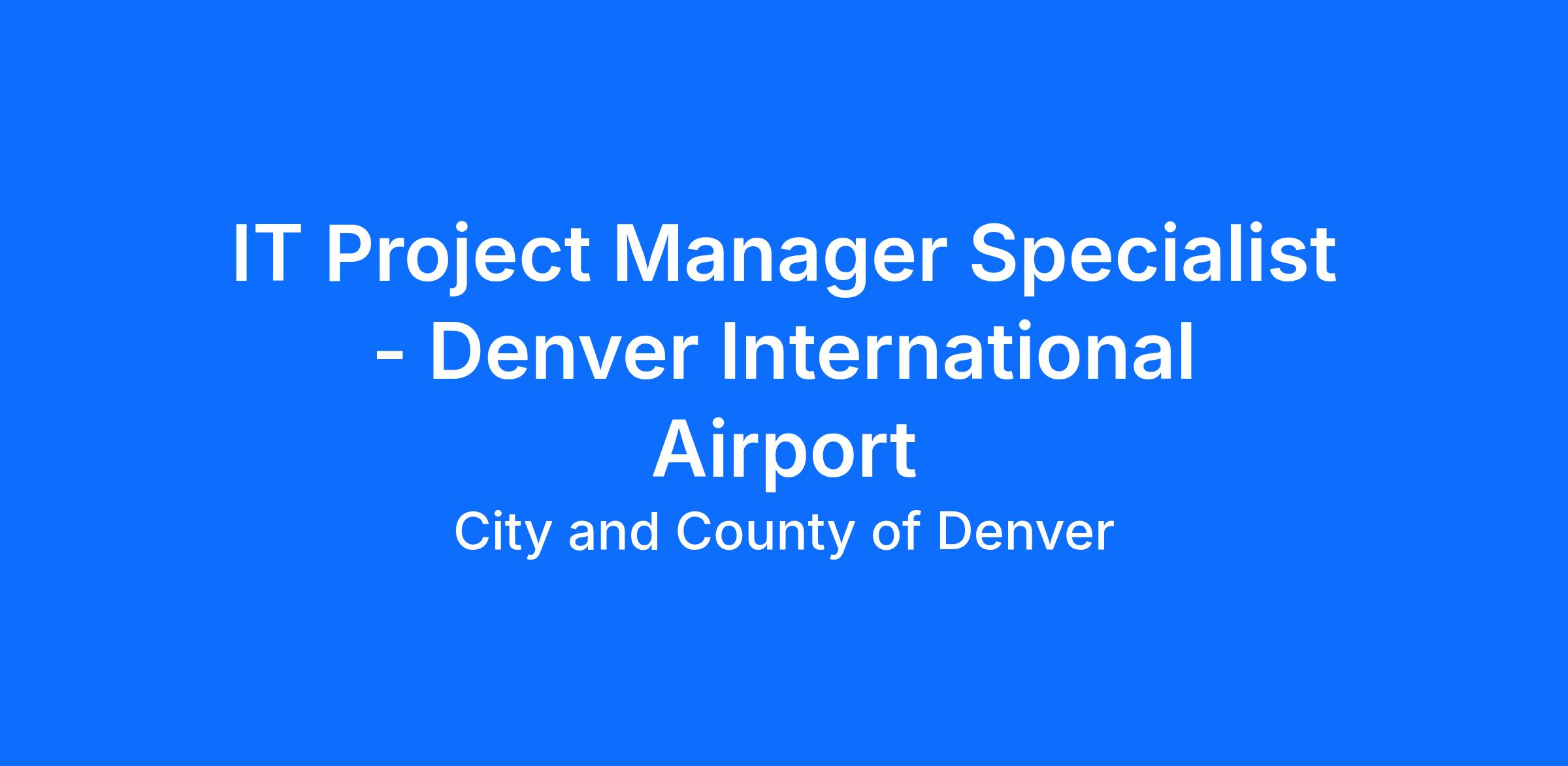 DEN is looking for an IT Project Manager Specialist to join our Business Technologies (BT) team. The IT Project Manager Specialist will lead multiple of the most complex, critical and visible projects, primarily focused on hardware, network, datacenter and other infrastructure implementations. The PM will act as a liaison between BT and airport business divisions and requires strong communication and management skills to control the interdependence and minimize operational risk to DEN. The IT PM Specialist will provide the level of management required to successfully implement these mission critical upgrades, while maintaining an acceptable level of risk to the overall implementation of the efforts.