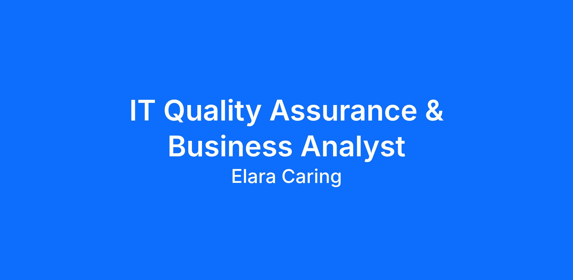 At Elara Caring, we care where you are and believe the best place for your care is where you live. We know there’s no place like home, and that’s why our teams continue to provide high-quality care to more than 60,000 patients each day in their preferred home setting. Wherever our patients call home and wherever they are on their journey of health, we care. Each team member has a part to play in this mission. This means you have countless ways to make a difference as a IT Quality Assurance & Business Analyst. Being a part of something this great starts by carrying out our mission every day through your true calling: developing an amazing team of compassionate and dedicated healthcare providers.
