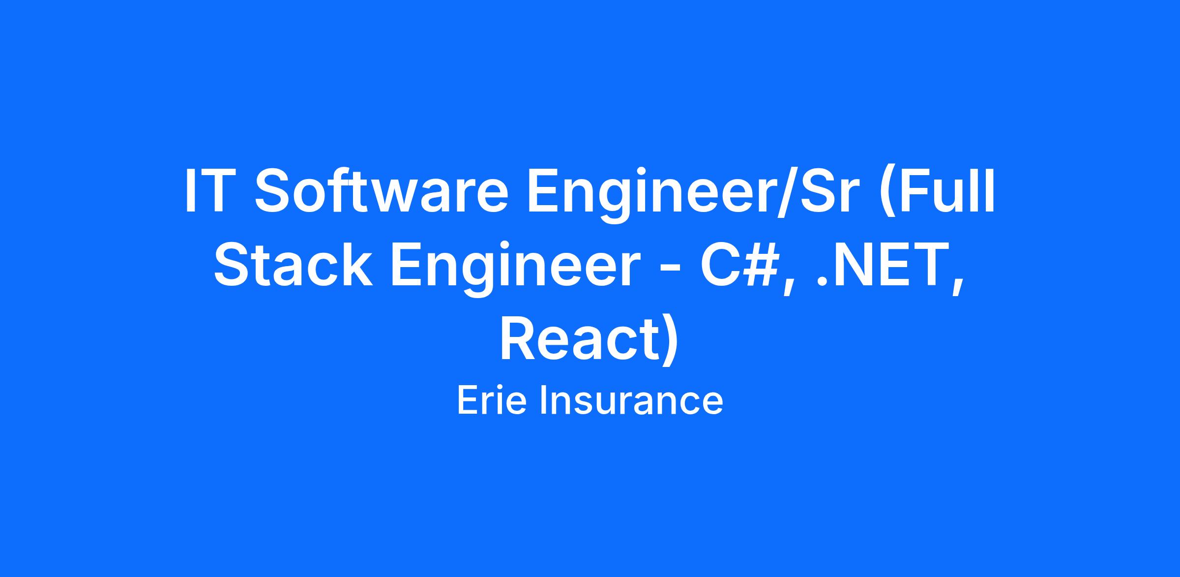 As a Professional/Senior Software Engineer, you will play a key role in advancing ERIE’s Omnichannel Communication program. You’ll build modern, scalable solutions that support major initiatives such as the Transition from Email to Username and the Portal Re-platform and Redesign. This role is full-stack by design, leveraging C#, .NET, React, AWS, and modern engineering practices to enhance user experience, strengthen platform capabilities, and accelerate ERIE’s digital transformation.