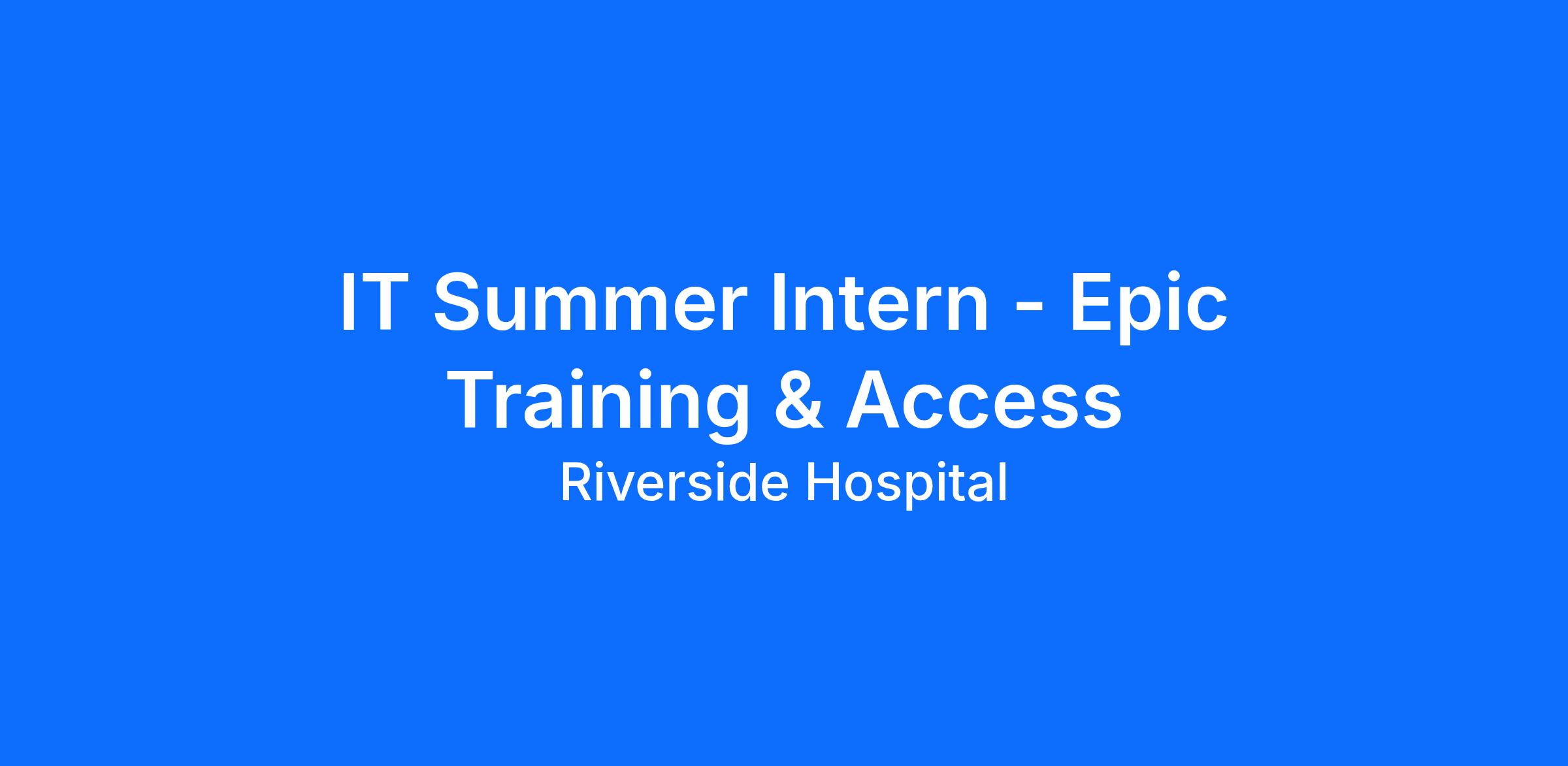 OverviewThe Riverside Health System provides a temporary paid student internship program that creates an opportunity to gain invaluable experience through a combination of mentoring, learning activities, and project work designed to give broad exposure to the inner workings of a health care system. This temporary paid internship program consists of various assignments throughout the health system combined with leadership development opportunities. Students serving in this role will be expected to participate in completing projects for the health system with minimal supervision. Students will be assigned to one department or facility for the entire program period where they will work under the supervision/mentorship of an experienced Business Unit Leader. Additionally, students may have the opportunity to attend training and development meetings in an environment with other students or administrative residents. Students may work in non-clinical functional areas such as hospital/facility/clinic administration, finance, information technology, marketing/communications, or human resources.
