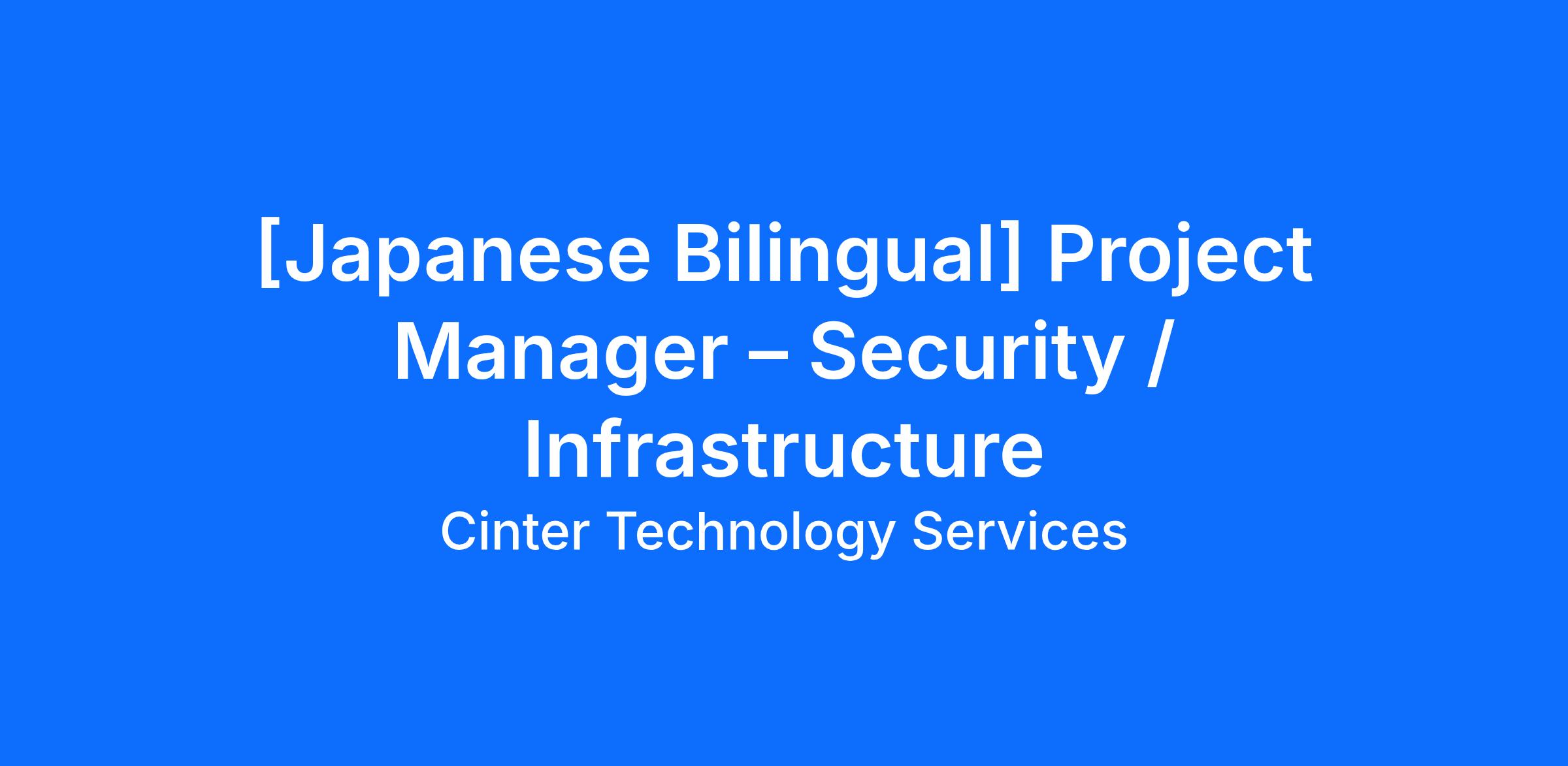 Job Title: Project Manager – Security / Infrastructure [Japanese Bilingual]