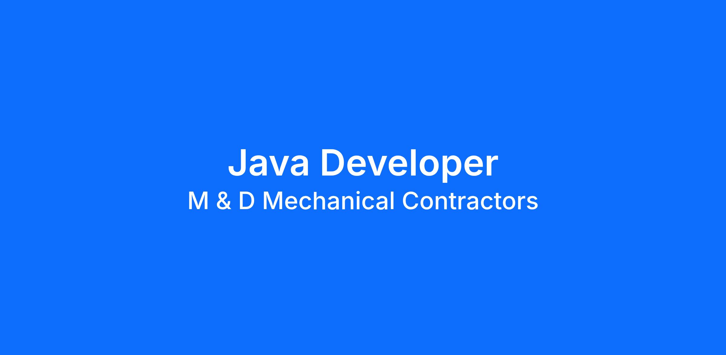 M&D Mechanical Contractors is seeking a highly skilled and motivated Java Developer to join our team in Decatur, AL. As a leading mechanical contracting company, we specialize in providing top-quality services to our clients in the commercial and industrial sectors. We are looking for a part-time Java Developer to assist us in developing and maintaining our internal software systems.