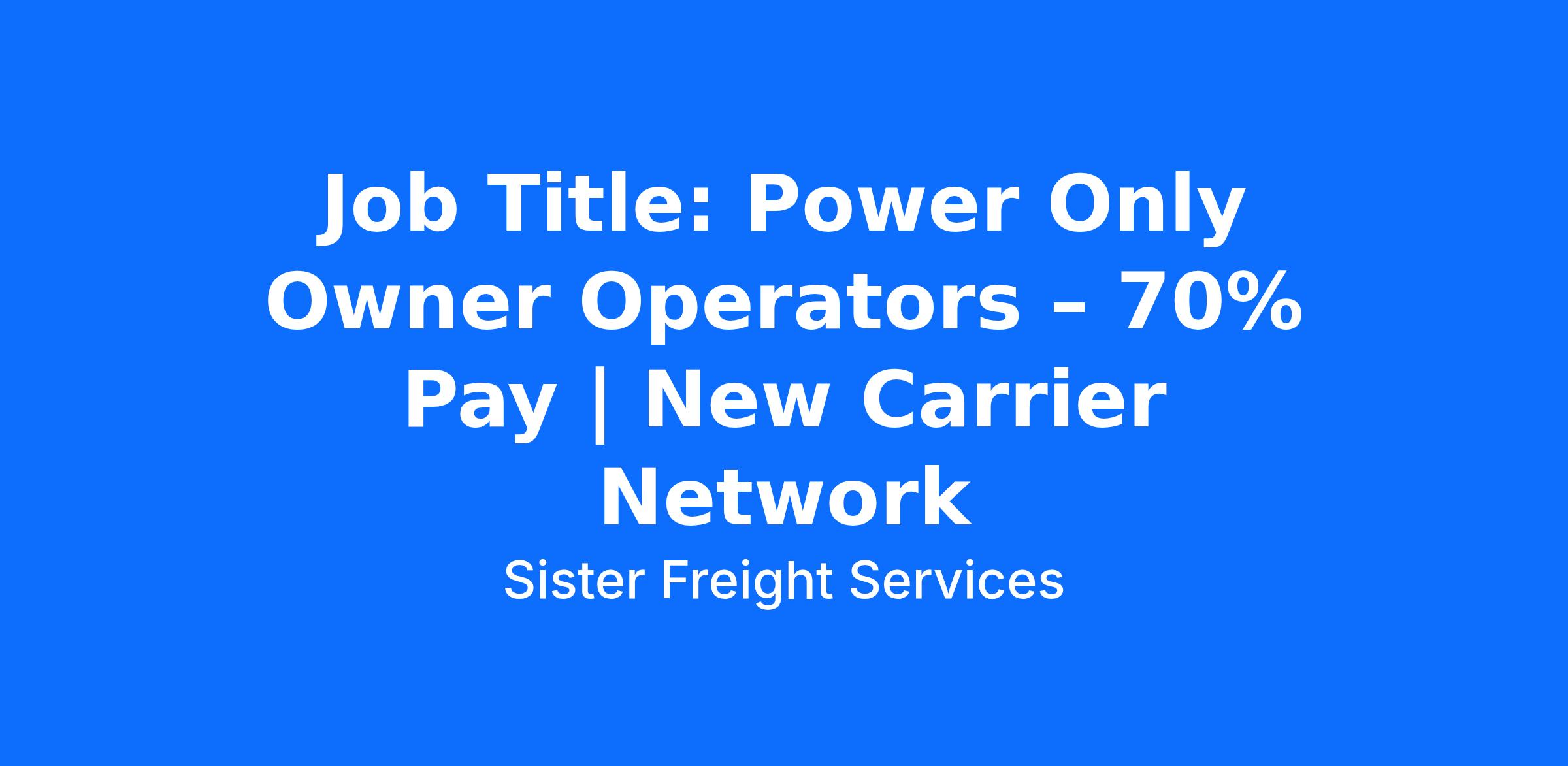 Sister Freight Services LLC is building a new Carrier Network and onboarding Power Only Owner-Operators for consistent trailer moves and drop and hook opportunities.