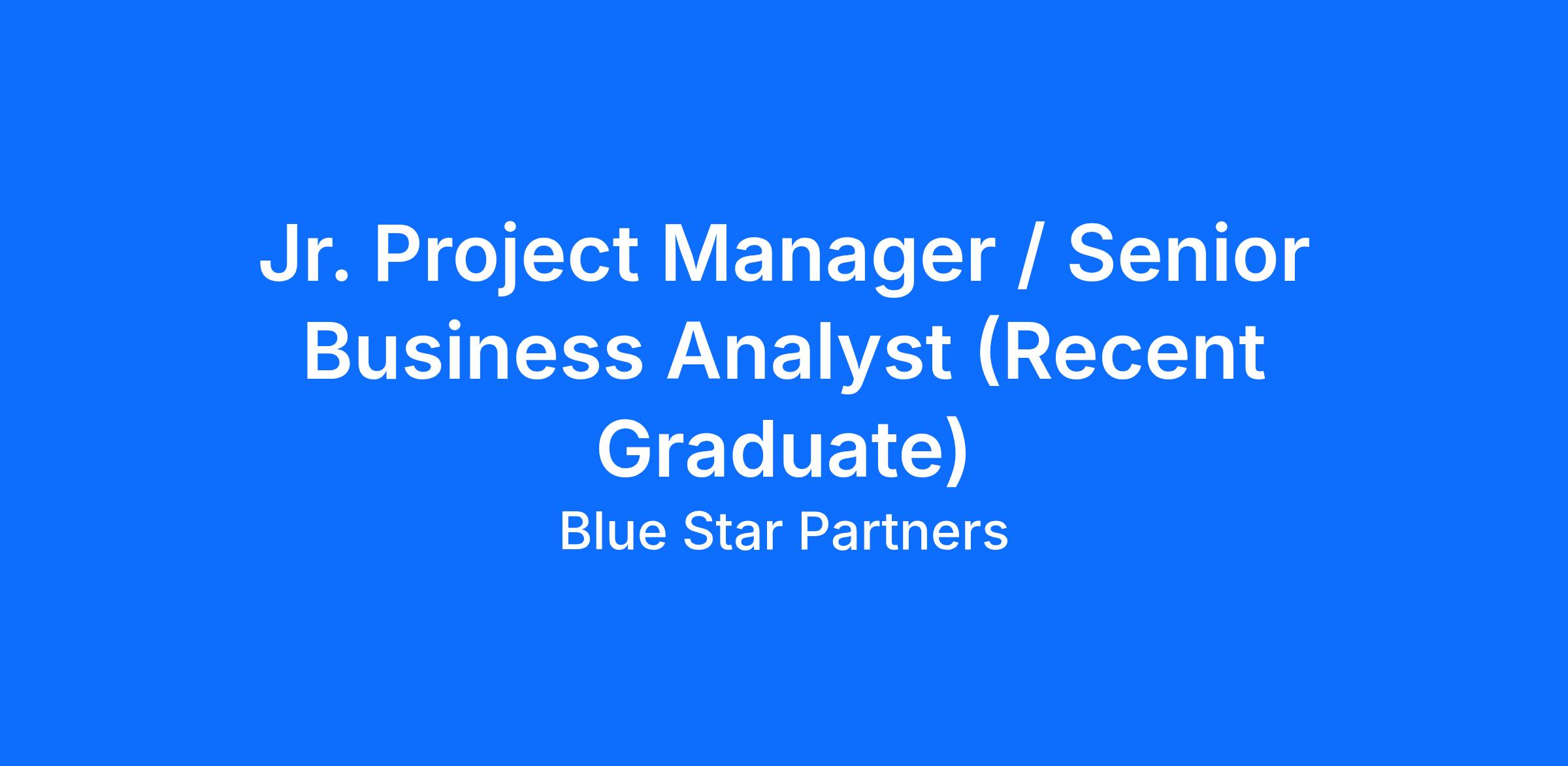 Job Title: Jr. Project Manager / Senior Business Analyst (Recent Graduate)