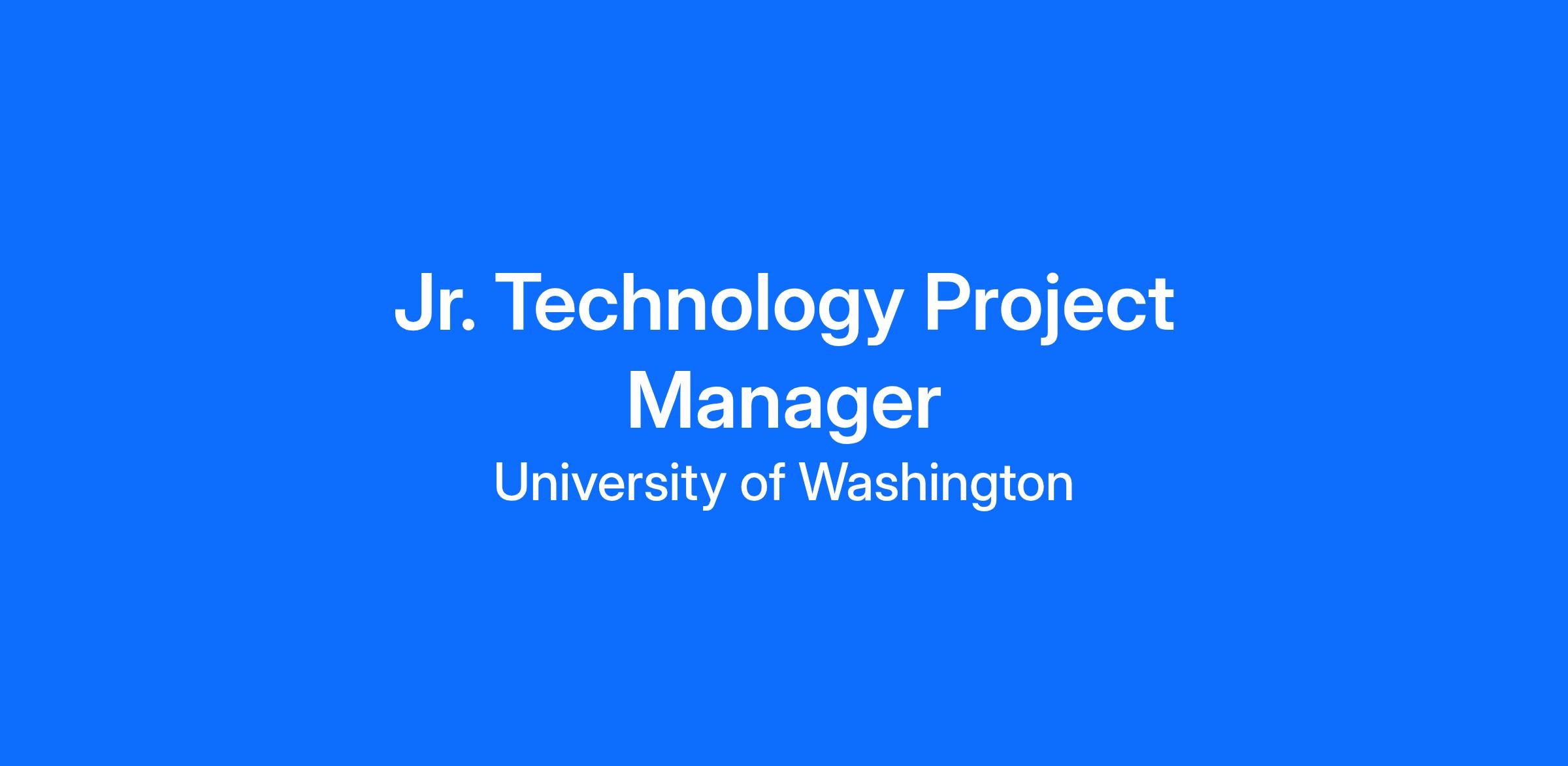 The University of Washington’s Office of Research has an outstanding opportunity for a Jr. Technology Project Manager.