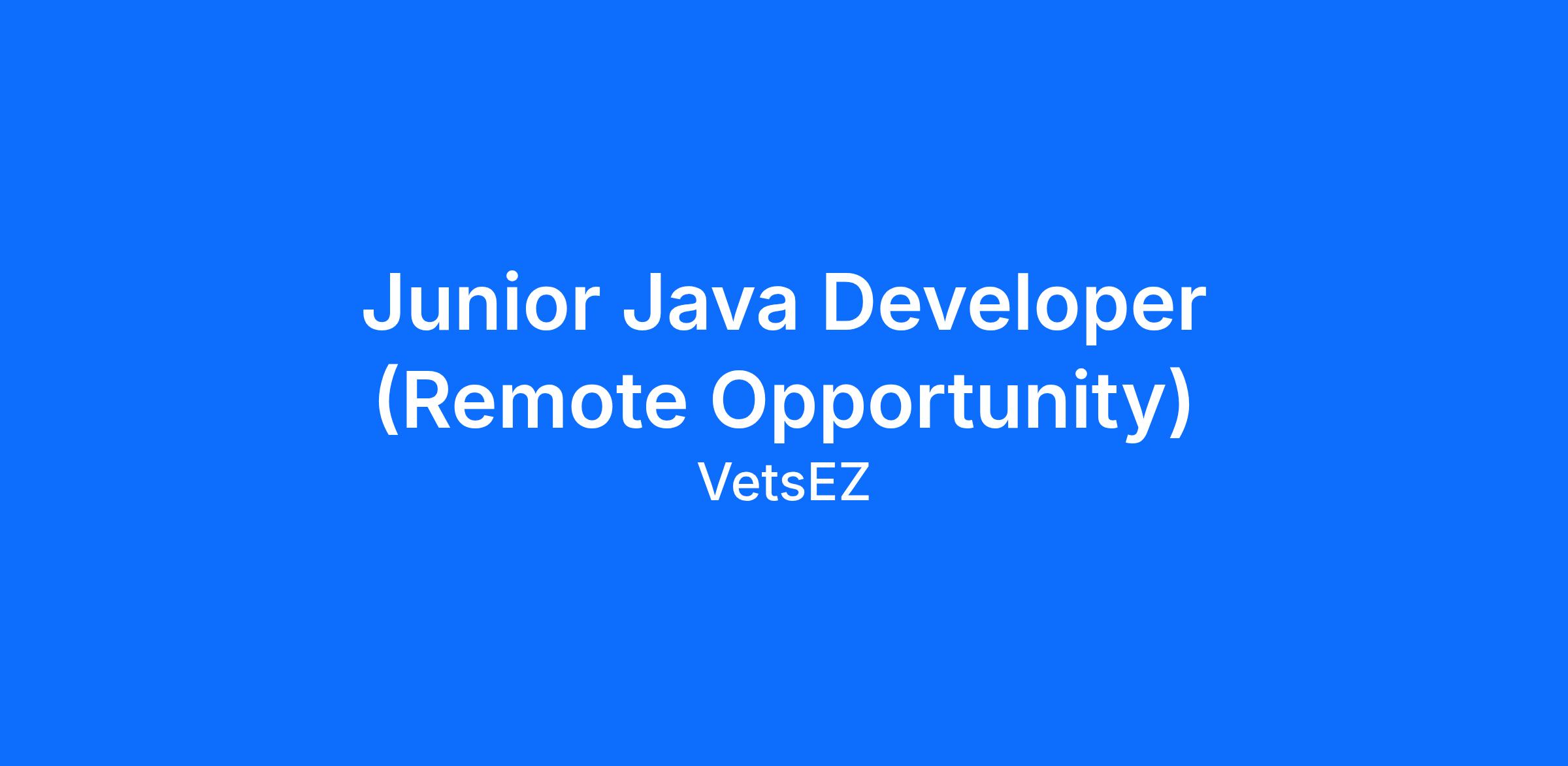 Junior Java Developer (Remote Opportunity)