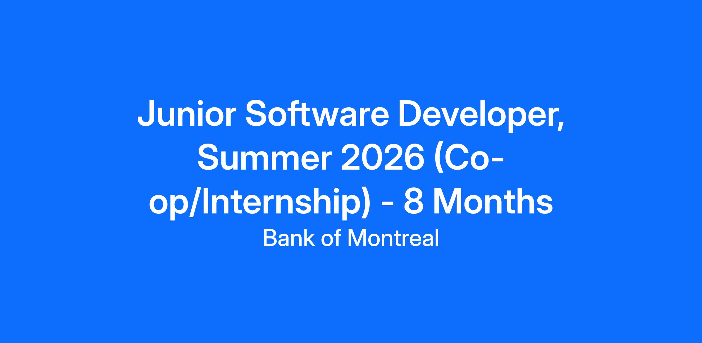 Junior Software Developer, Summer 2026 (Co-op/Internship) - 8 Months