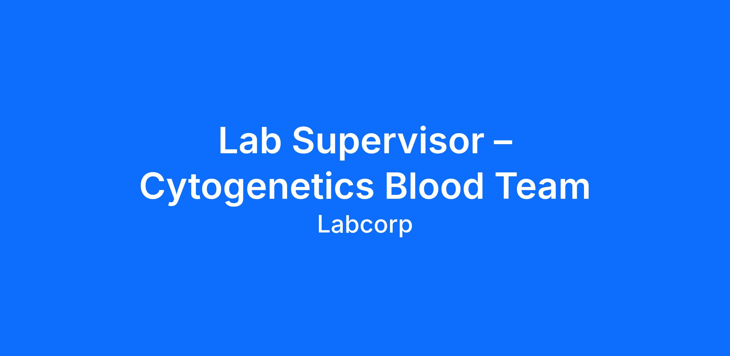 Lab Supervisor – Cytogenetics Blood Team