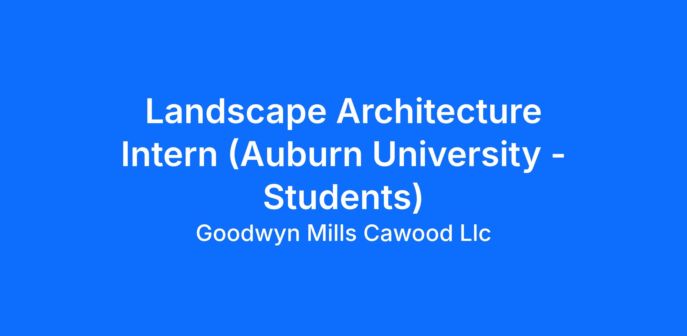 GMC (Goodwyn Mills Cawood) is seeking a Landscape Architecture Intern (Auburn) in Birmingham, AL and other office locations for the Summer of 2026. We are seeking creative, self-motivated individuals who thrive at critical thinking and problem solving. Interns will have the opportunity to grow professionally and personally in a fun, collaborative environment while working side-by-side with senior staff and other design team members across a range of project types, both public and private.
