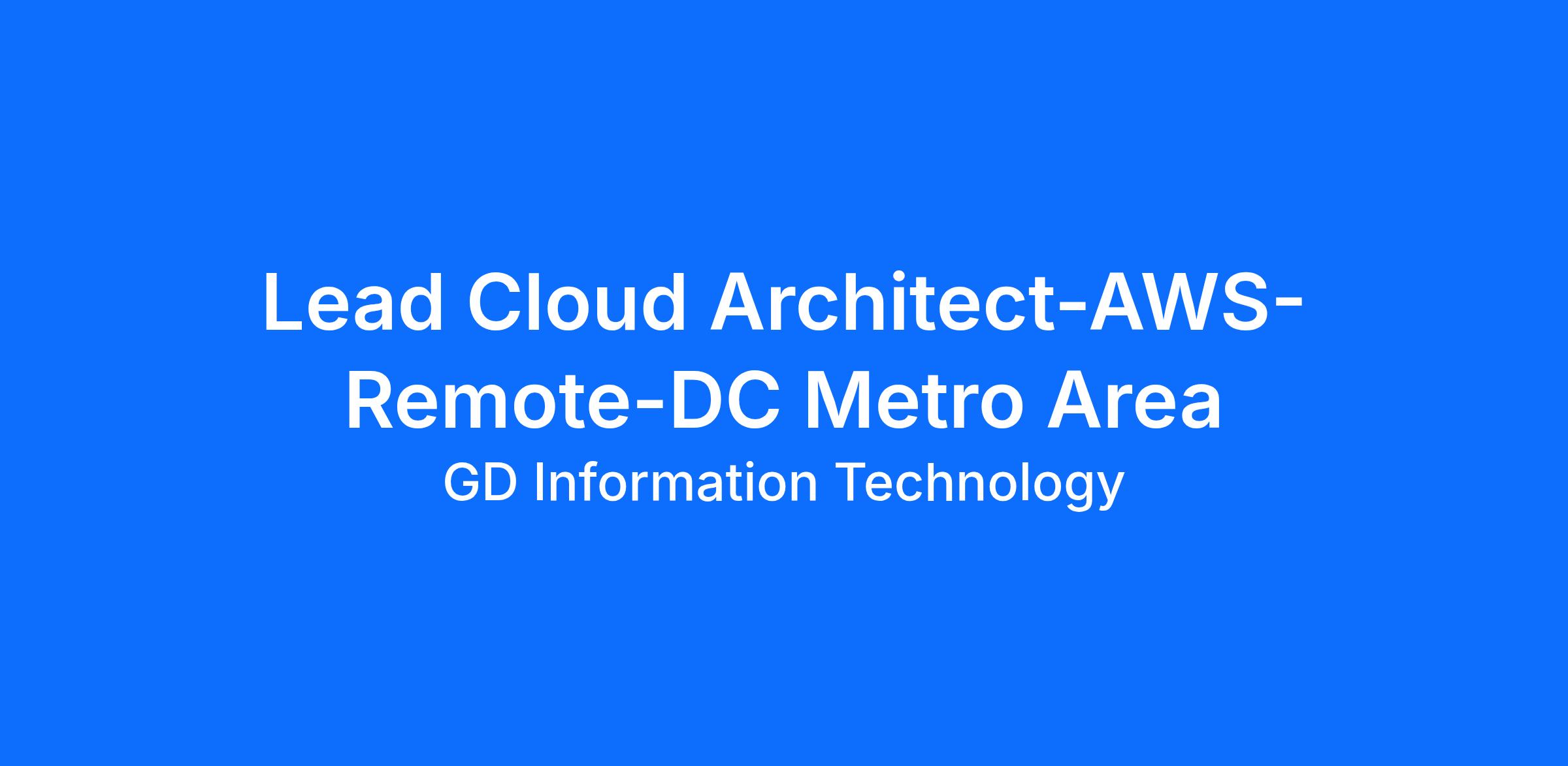 General Dynamics Information Technology (GDIT) seeks a Lead Cloud Architect to join our innovative cloud infrastructure team. In this role, you will collaborate directly with our federal client to modernize and expand their cloud capabilities, enabling their mission-critical operations through cutting-edge cloud solutions. We manage multi-cloud environments, and as a key technical leader, you will shape architectures, synthesize cross-agency requirements, and drive successful implementation.