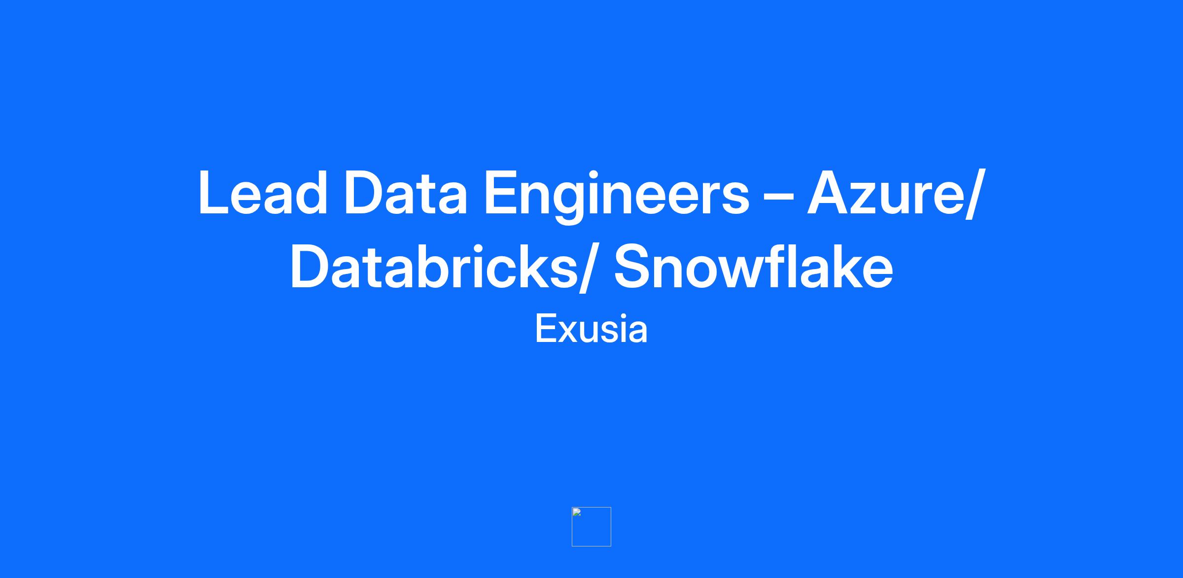 Lead Data Engineers – Azure/ Databricks/ Snowflake