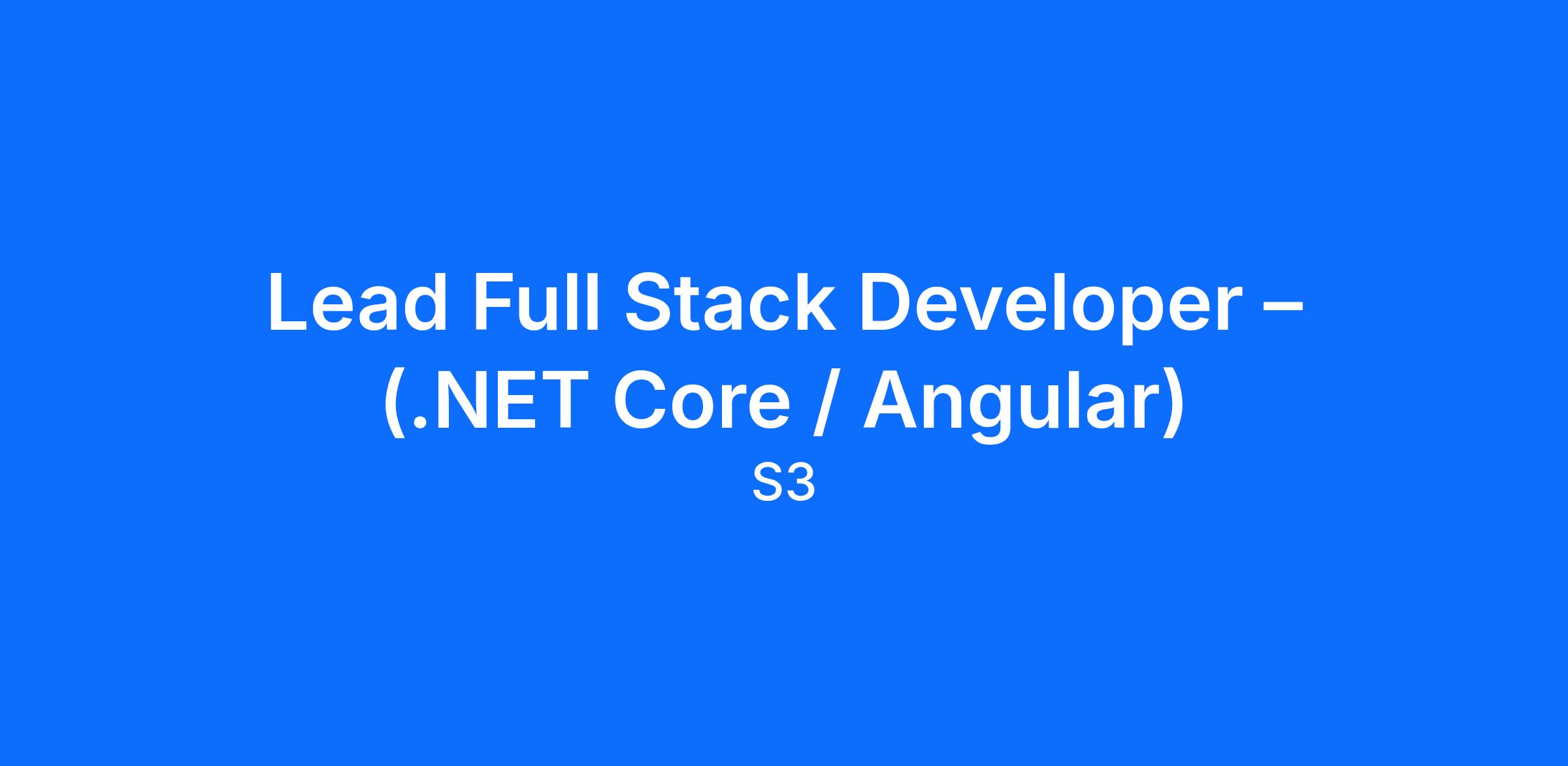 Job Title: Lead Full Stack Developer – (.NET Core / Angular)