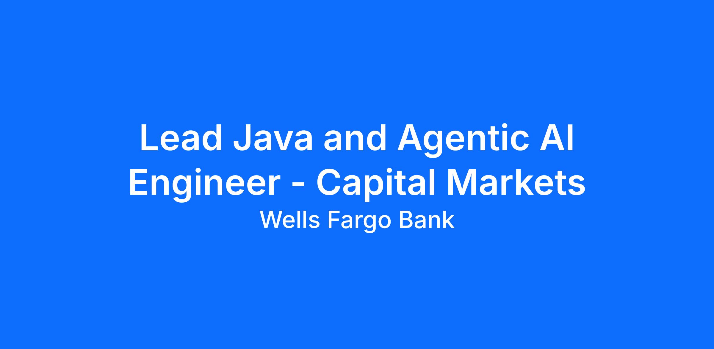 Wells Fargo is seeking a Lead Java and Agentic AI Engineer - Capital Markets to join our Prime Brokerage and Equity Finance & Futures (EF&F) Technology team. As part of a feature delivery team, you will help build the foundational framework that powers highly scalable, resilient, self‑healing, high‑throughput, and low‑latency solutions supporting Clearing and Market Making functions.
