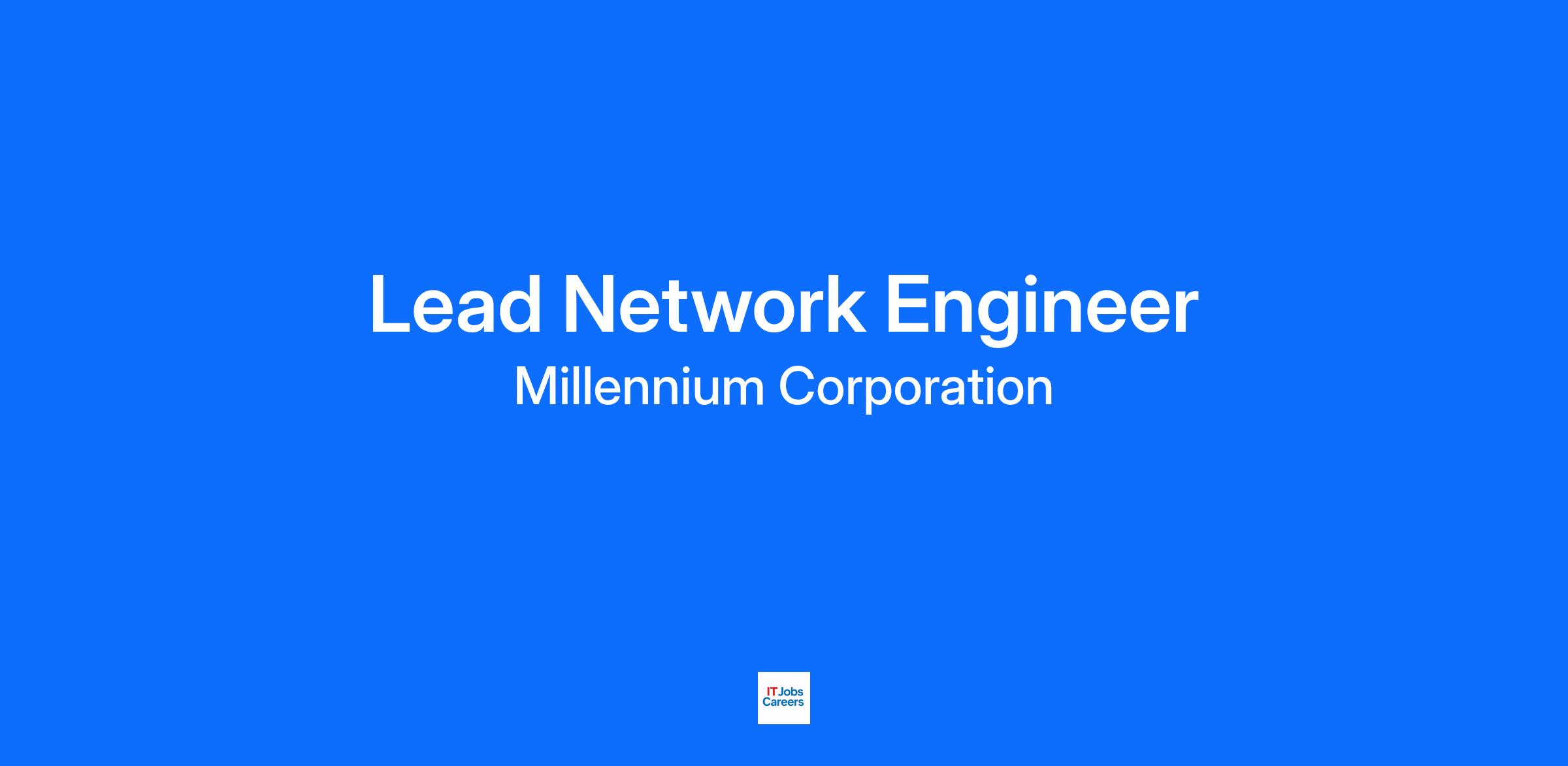 Millennium Corporation is hiring a Lead Network Engineer to work in Arlington, VA. The candidate must have an active TS/SCI.