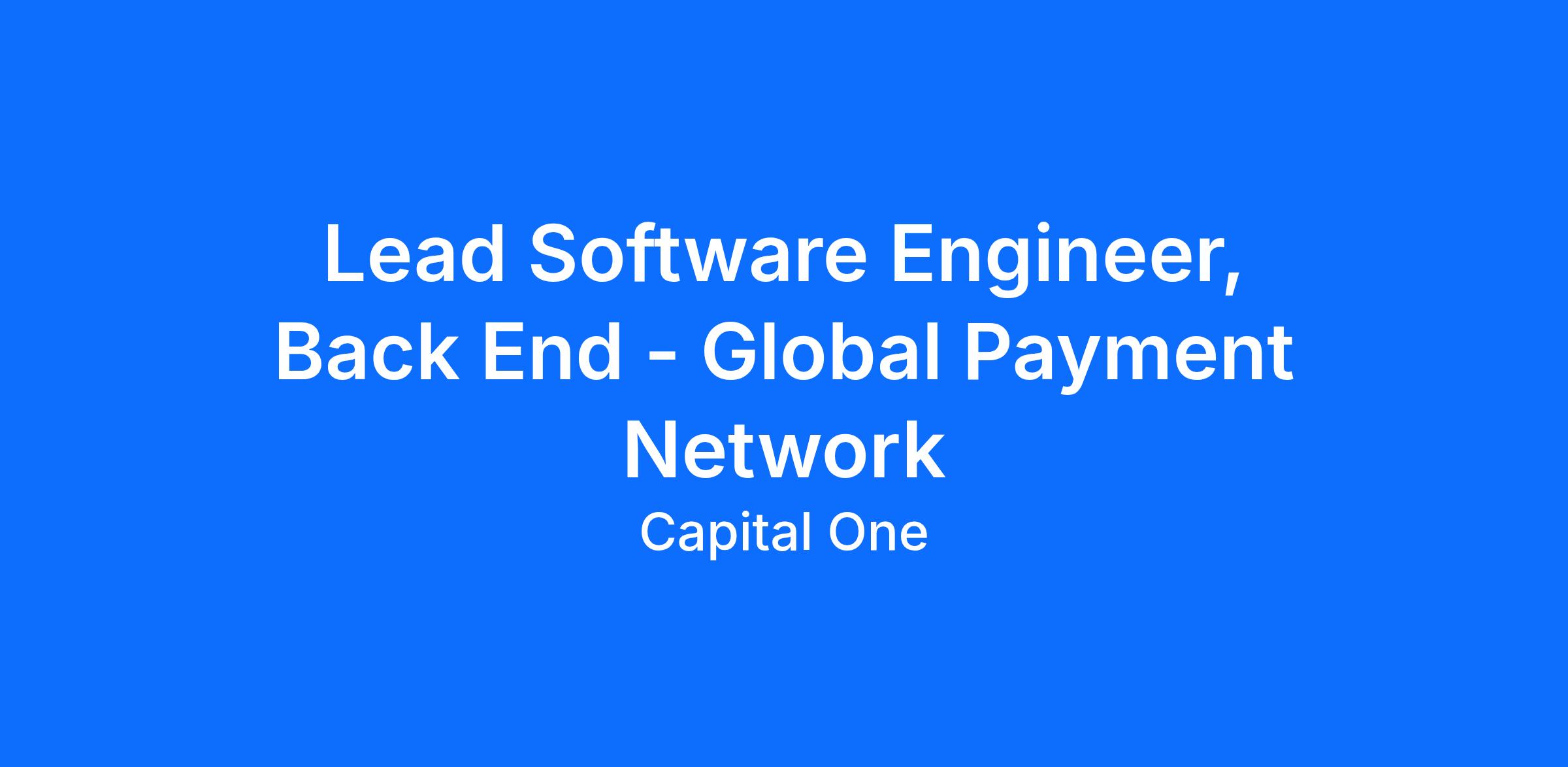 Lead Software Engineer, Back End - Global Payment Network