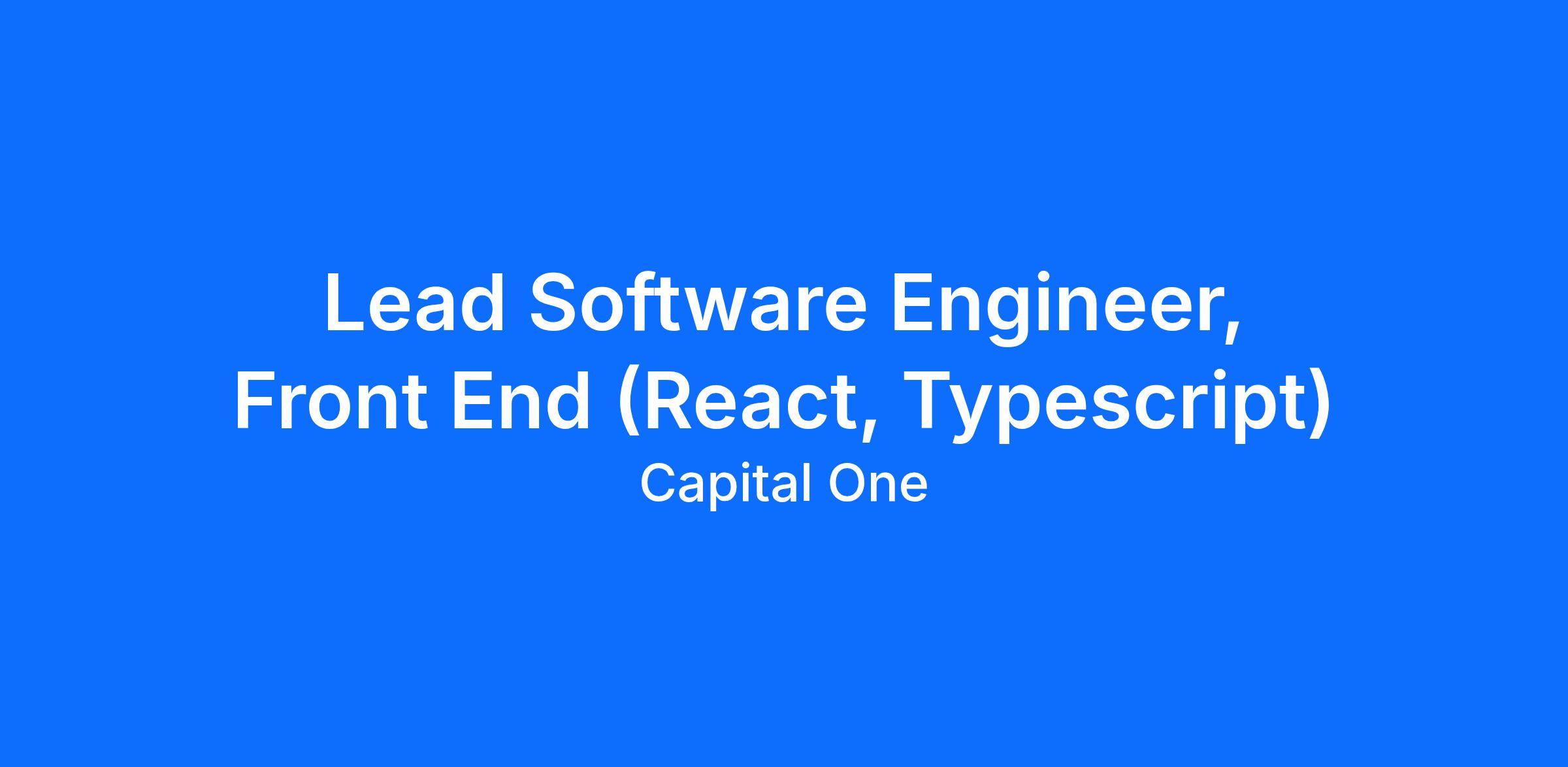 Do you love building and pioneering in the technology space? Do you enjoy solving complex business problems in a fast-paced, collaborative, inclusive, and iterative delivery environment? At Capital One, you'll be part of a big group of makers, breakers, doers and disruptors, who solve real problems and meet real customer needs. We are seeking Front End Software Engineers who are passionate about using cutting-edge open source frameworks with emerging technologies. As a Capital One Lead Software Engineer, you’ll have the opportunity to be on the forefront of driving a major transformation within Capital One.