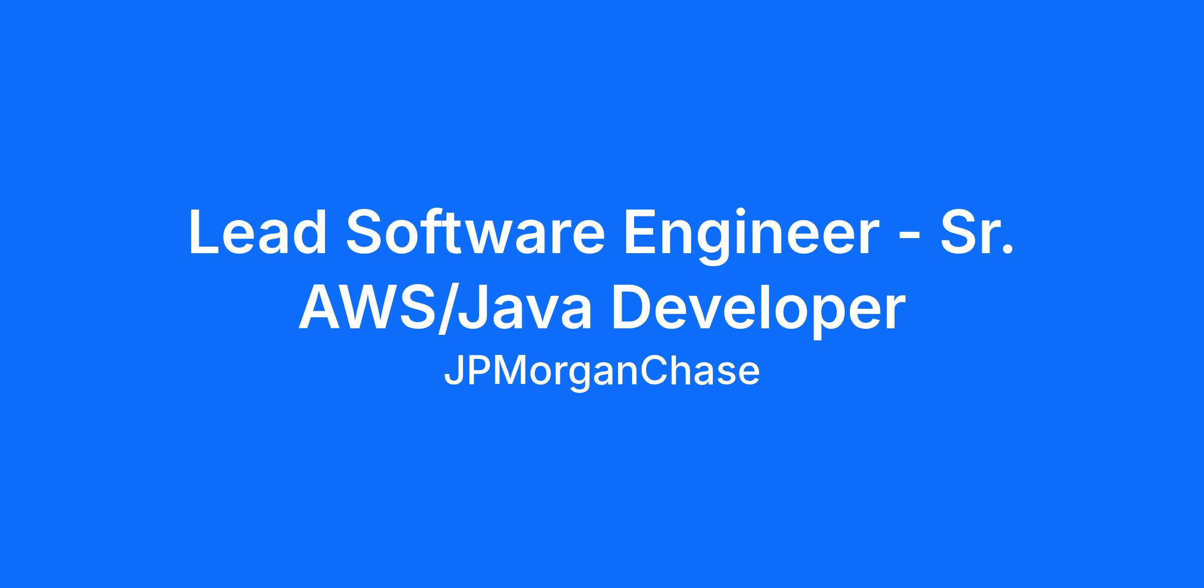 Lead Software Engineer - Sr. AWS/Java Developer