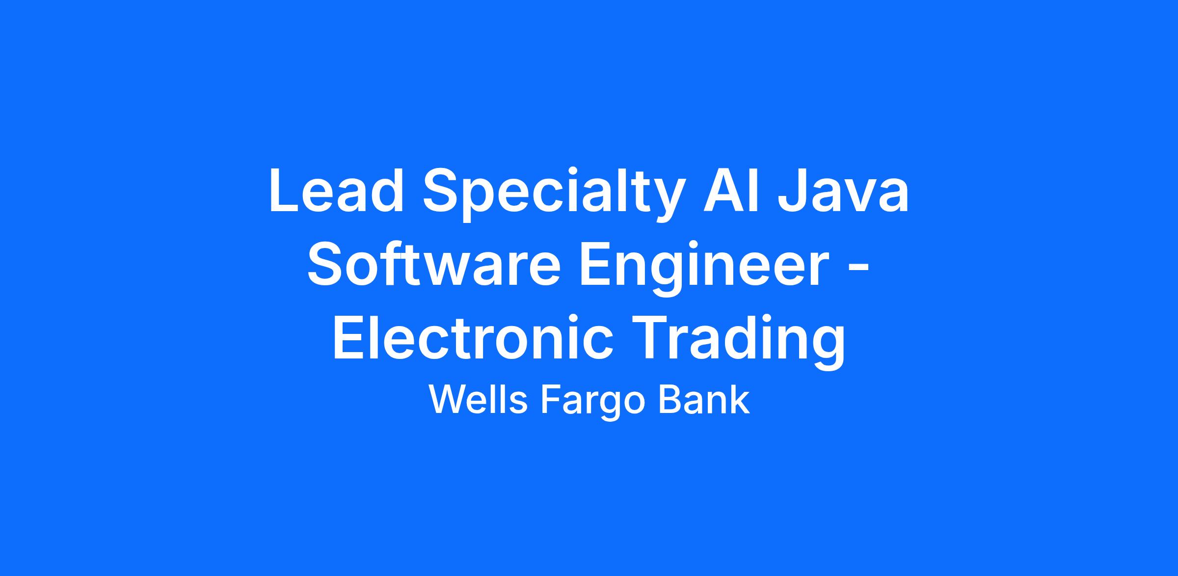 Lead Specialty AI Java Software Engineer -Electronic Trading