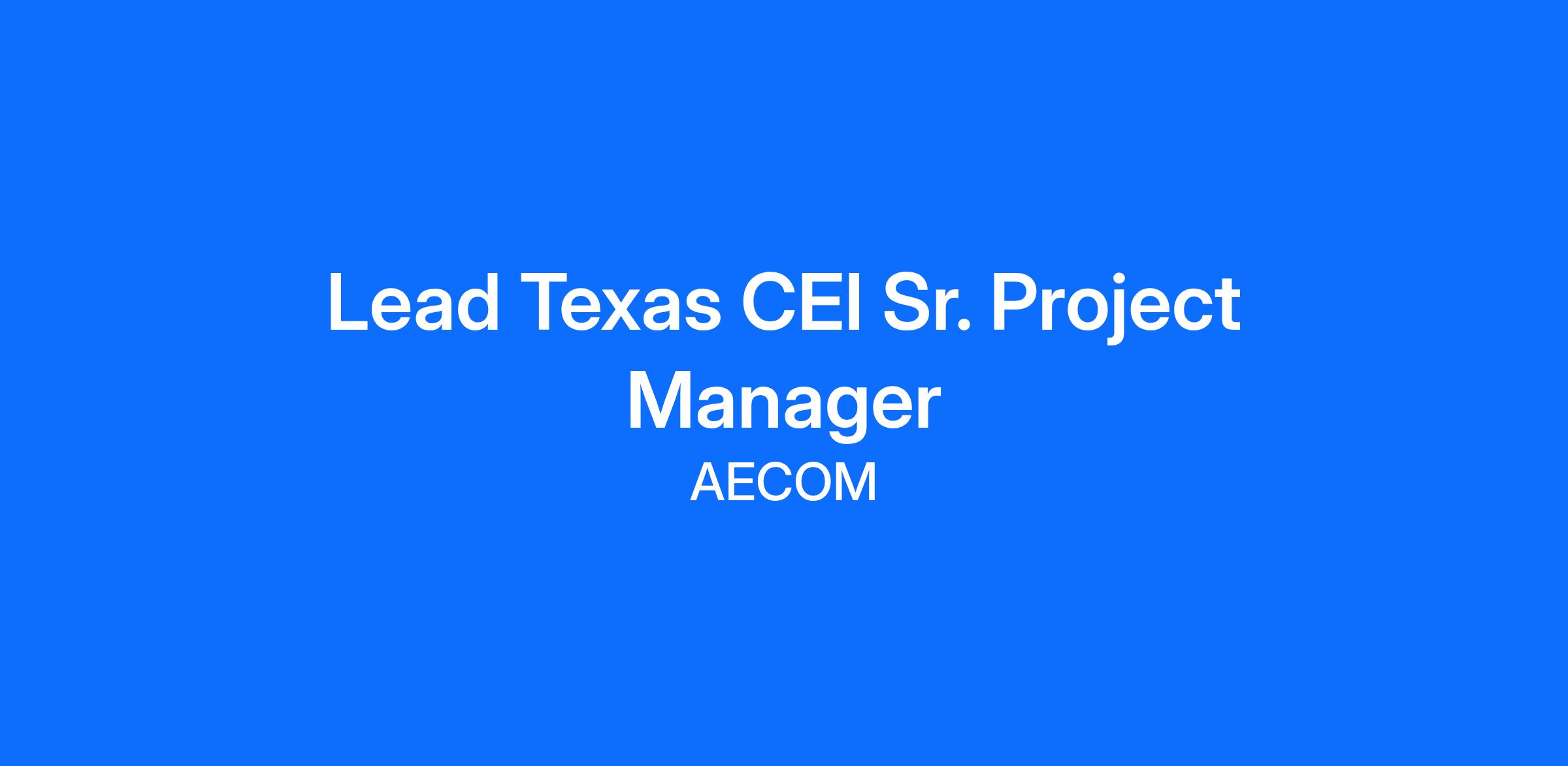 AECOM is seeking a full-time Lead Texas CEI Sr. Project Manager to be based in Austin, TX.