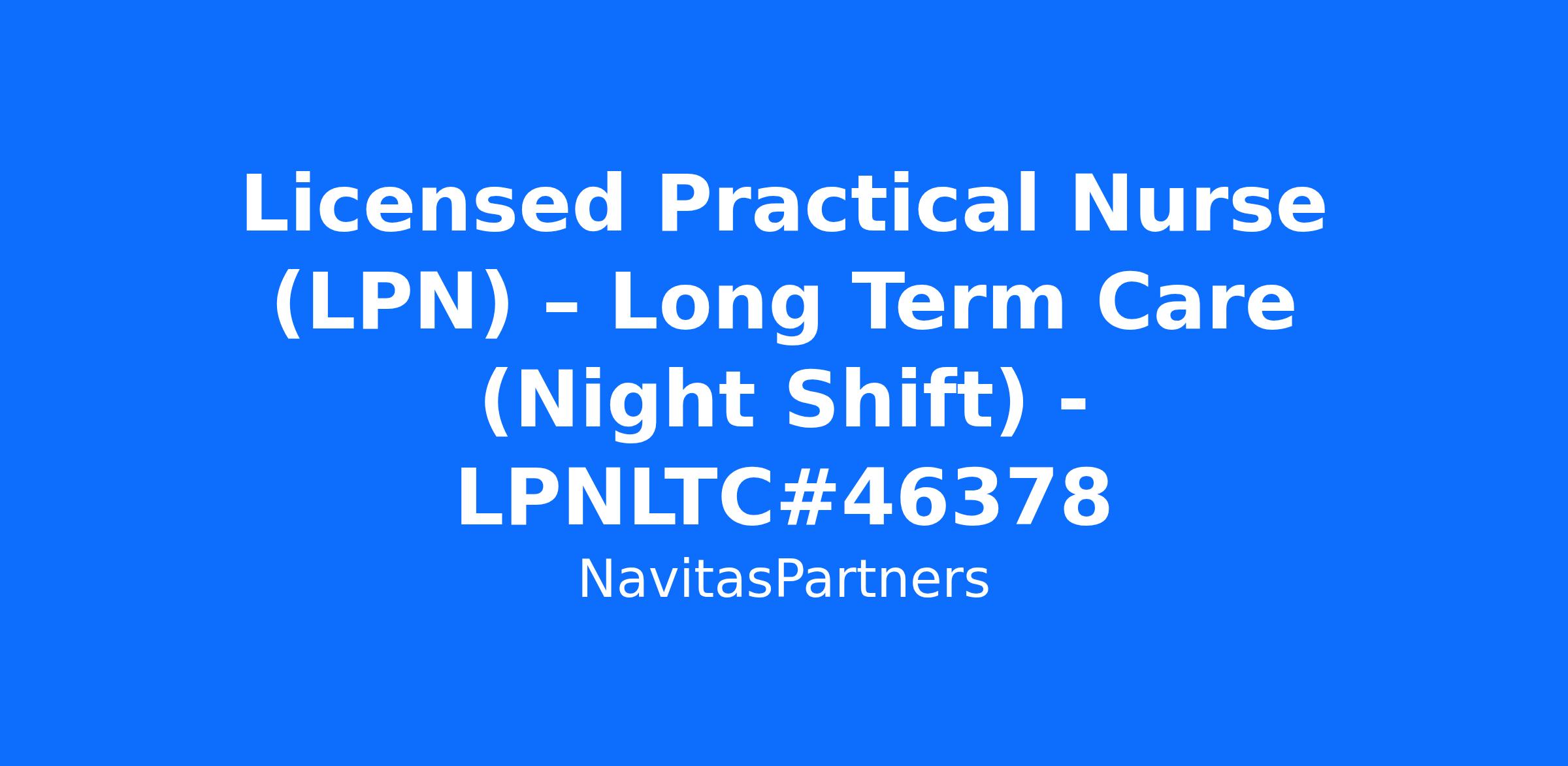 "Navitas Healthcare, LLC" is an experienced Licensed Practical Nurse (LPN) to provide high-quality nursing care in a Long Term Care setting. The role includes supervising daily nursing activities during night shifts while ensuring safe, compliant, and patient-centered care.