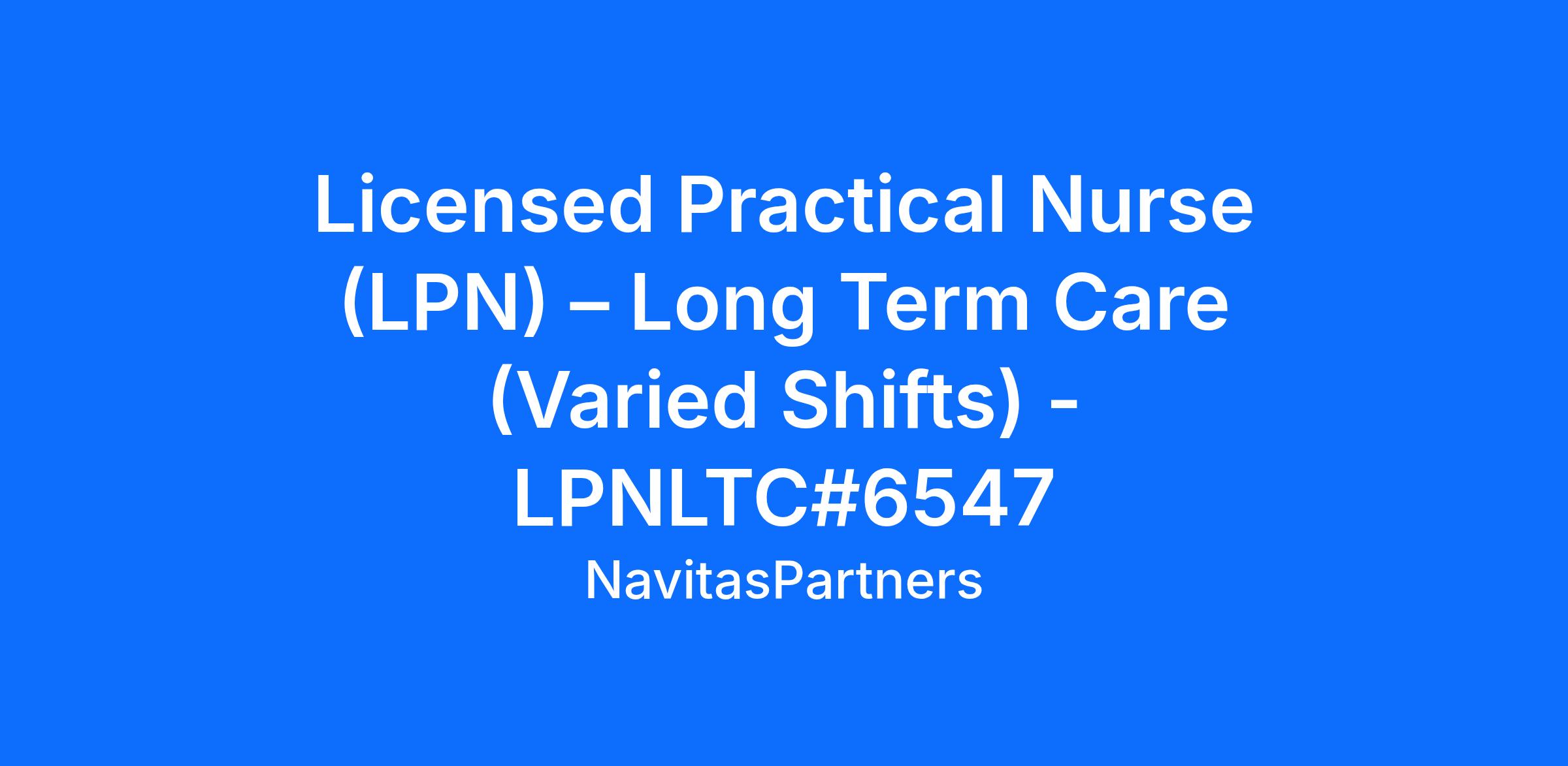 Position Title: Licensed Practical Nurse (LPN) – Long Term Care (Varied Shifts)