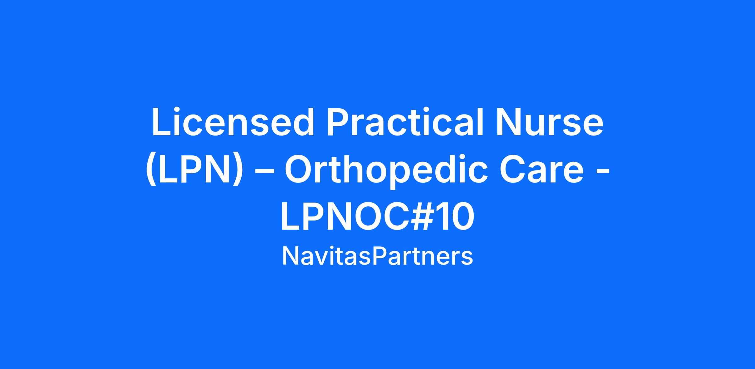 Job Title: Licensed Practical Nurse (LPN) – Orthopedic Care