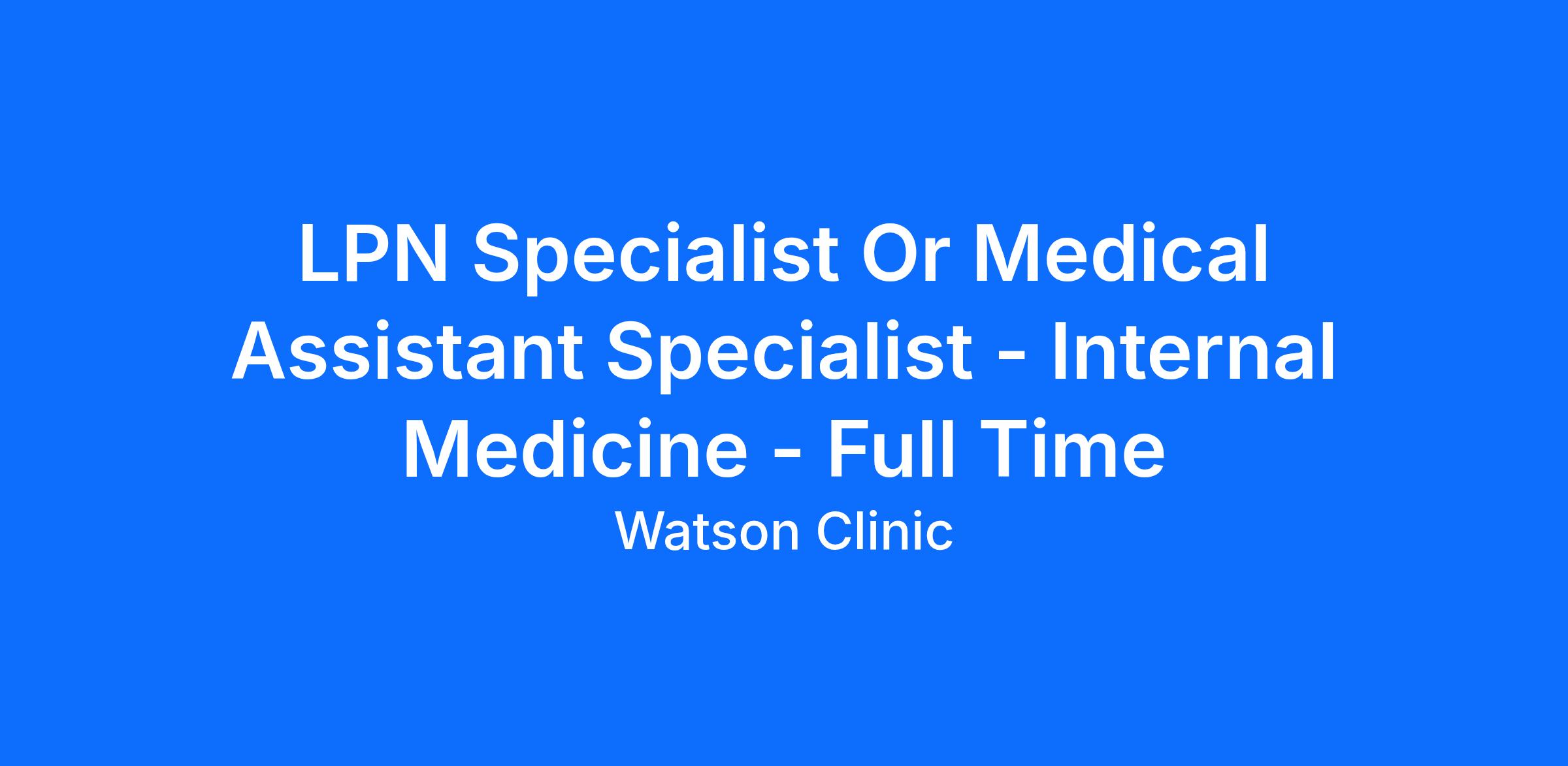 LPN Specialist requirements are: