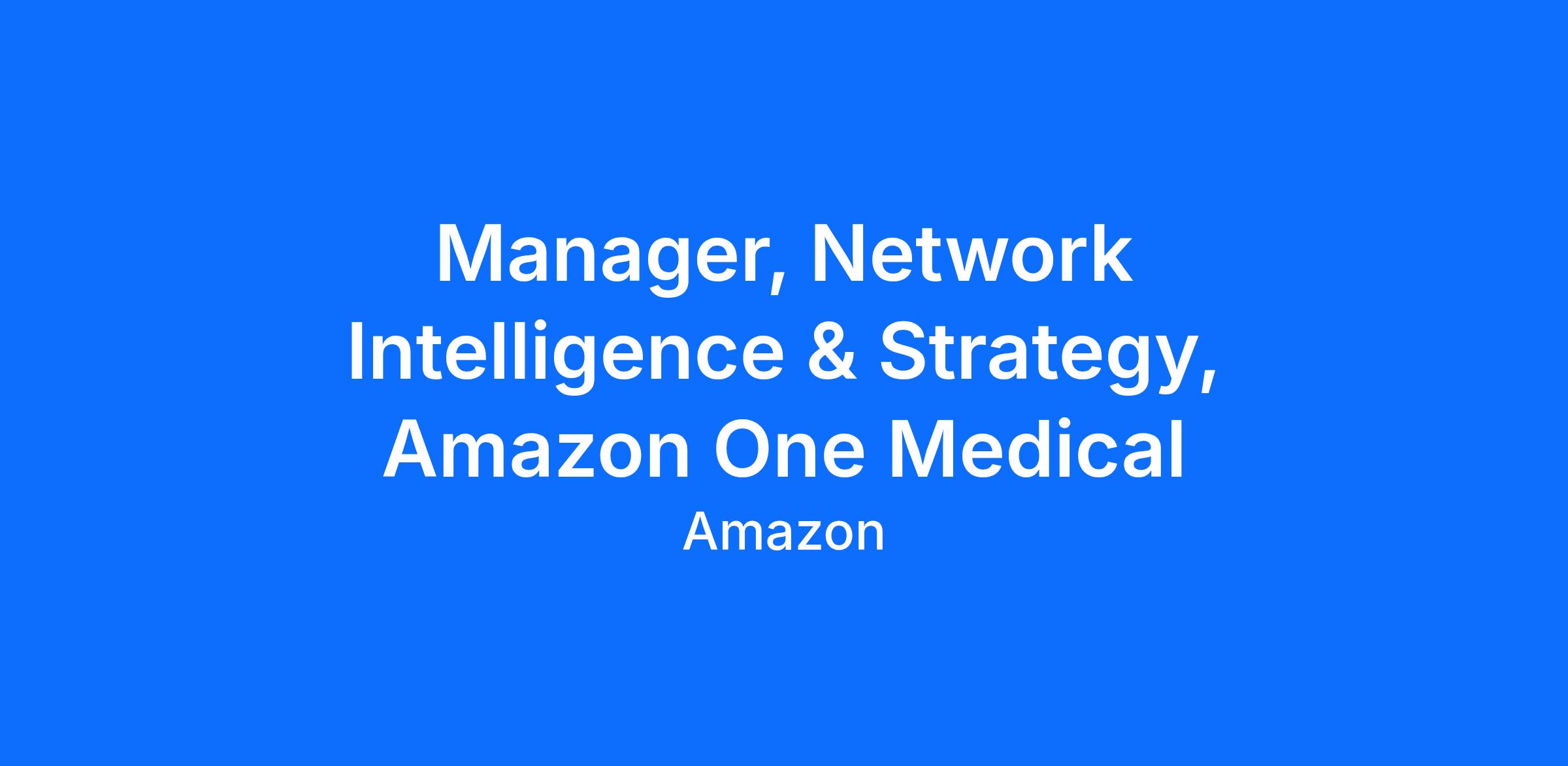 As the the Manager, Network Intelligence & Strategy, you will build and lead the network intelligence capability that underpins Amazon Health’s expanding provider ecosystem. This is a highly strategic role responsible for defining how Amazon evaluates markets, designs provider networks, and translates network insights into scalable partnerships across payers, employers, and health systems. This role operates at the intersection of strategy, analytics, and execution and will directly influence how Amazon scales its provider platform nationally.