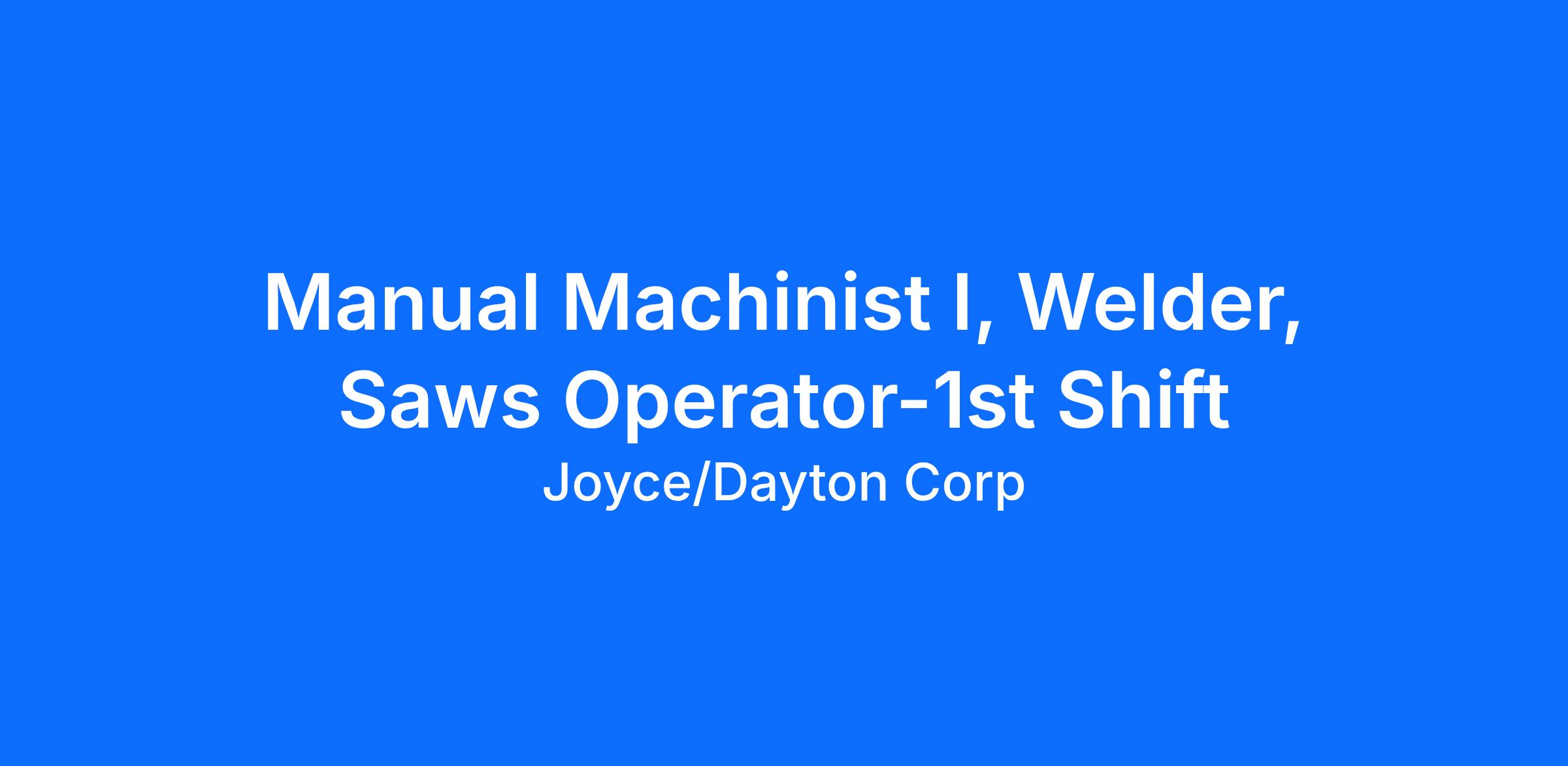 Summary: This position operates tubes, saws, and lathes. It must work safely and effectively while maintaining high-quality standards. This is an hourly non-exempt position reporting to the Production Supervisor.
