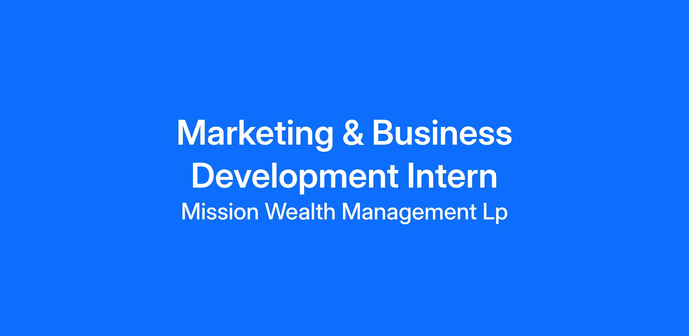 As a Barron’s Top 100 RIA firm and voted Best Places to Work by Fortune, Pacific Coast Business Times, Inc. (Best Workplaces), and Investment News, Mission Wealth is seeking a motivated, growth-minded Marketing & Business Development Intern to support our fast-growing national marketing team! If you’re passionate about digital marketing, SEO, and data analytics—and want to learn how marketing drives business development in the financial services industry—this is an exciting opportunity to learn from one of the nation’s leading RIAs.