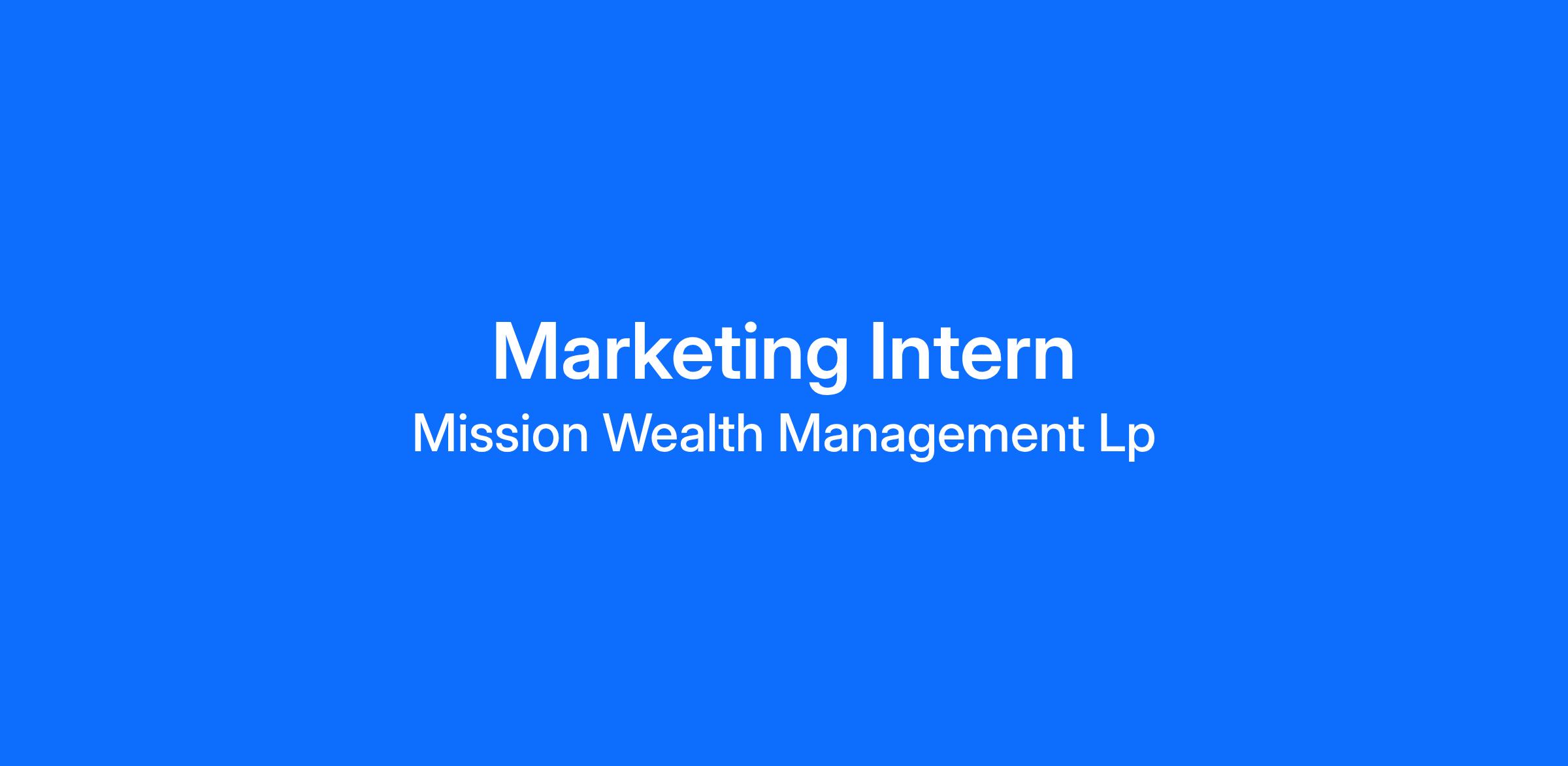 As a Barron’s Top 100 RIA firm and voted Best Places to Work by Fortune, Pacific Coast Business Times, Inc. (Best Workplaces), and Investment News, Mission Wealth is seeking a motivated, growth-minded Marketing Intern to join our award-winning team! If you’re ready to kickstart your marketing career at a leading wealth management firm with a passion for purpose and innovation, this internship is for you. Our ideal candidate is a creative, curious, and tech-savvy student or recent graduate who’s eager to gain hands-on experience in marketing, content creation, and digital engagement.