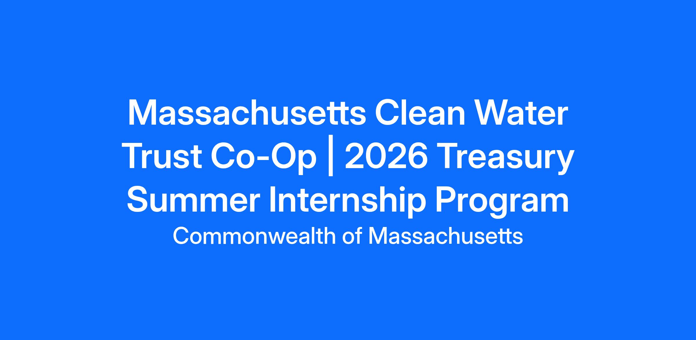 In this position, selected applicants will gain valuable experience in public administration, policy, and finance while directly supporting the Trust’s program operations. You will complete a series of mini projects aligned with the Trust’s ongoing activities and work alongside our Program Associates (PAs), the staff members who serve as the Trust’s primary contact with borrowers and partners at the Massachusetts Department of Environmental Protection (MassDEP).