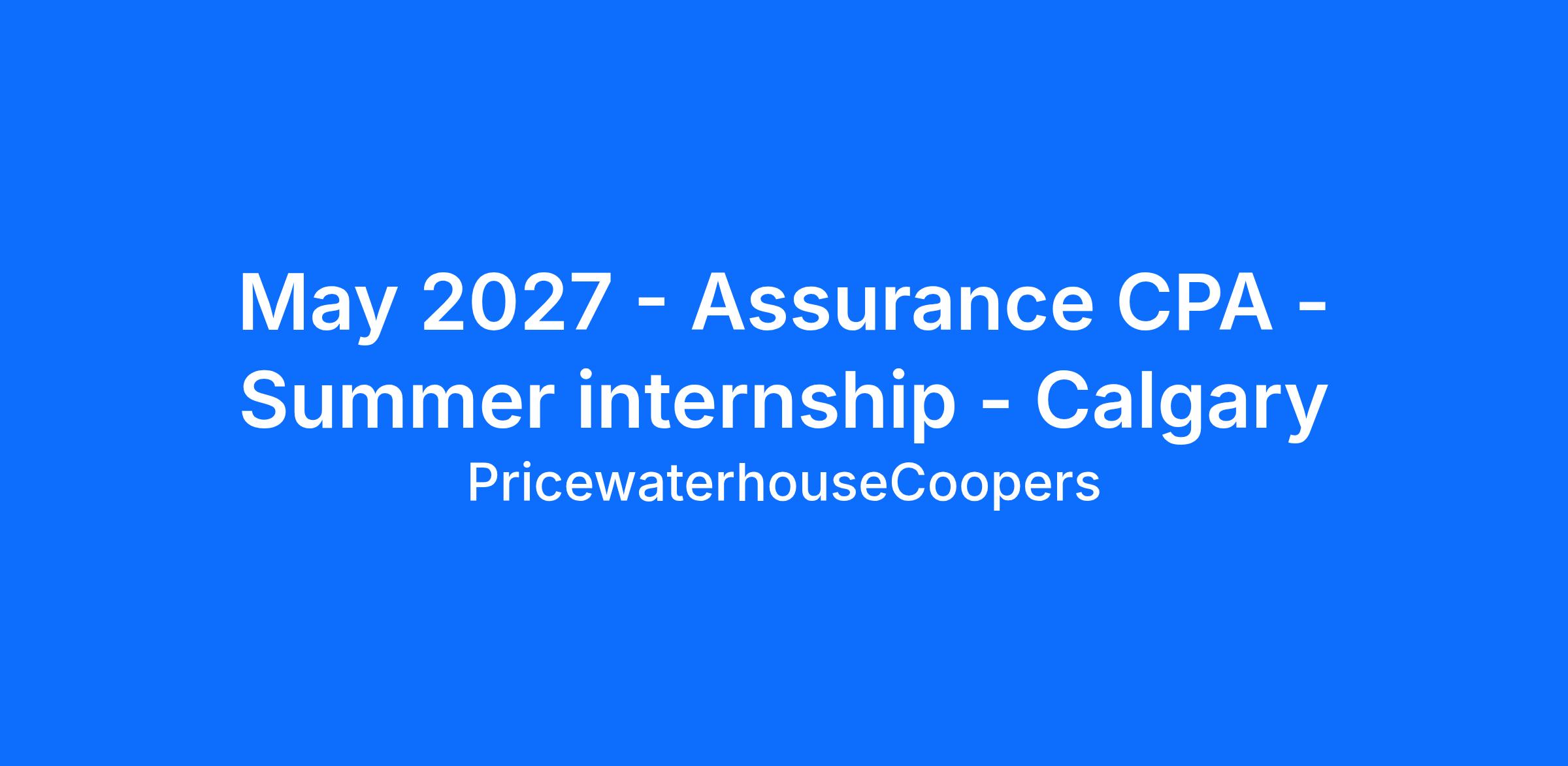 This role requires that you are legally entitled to work for PwC in Canada for the intended duration of the offer/contract from early May until Mid-August 2027.