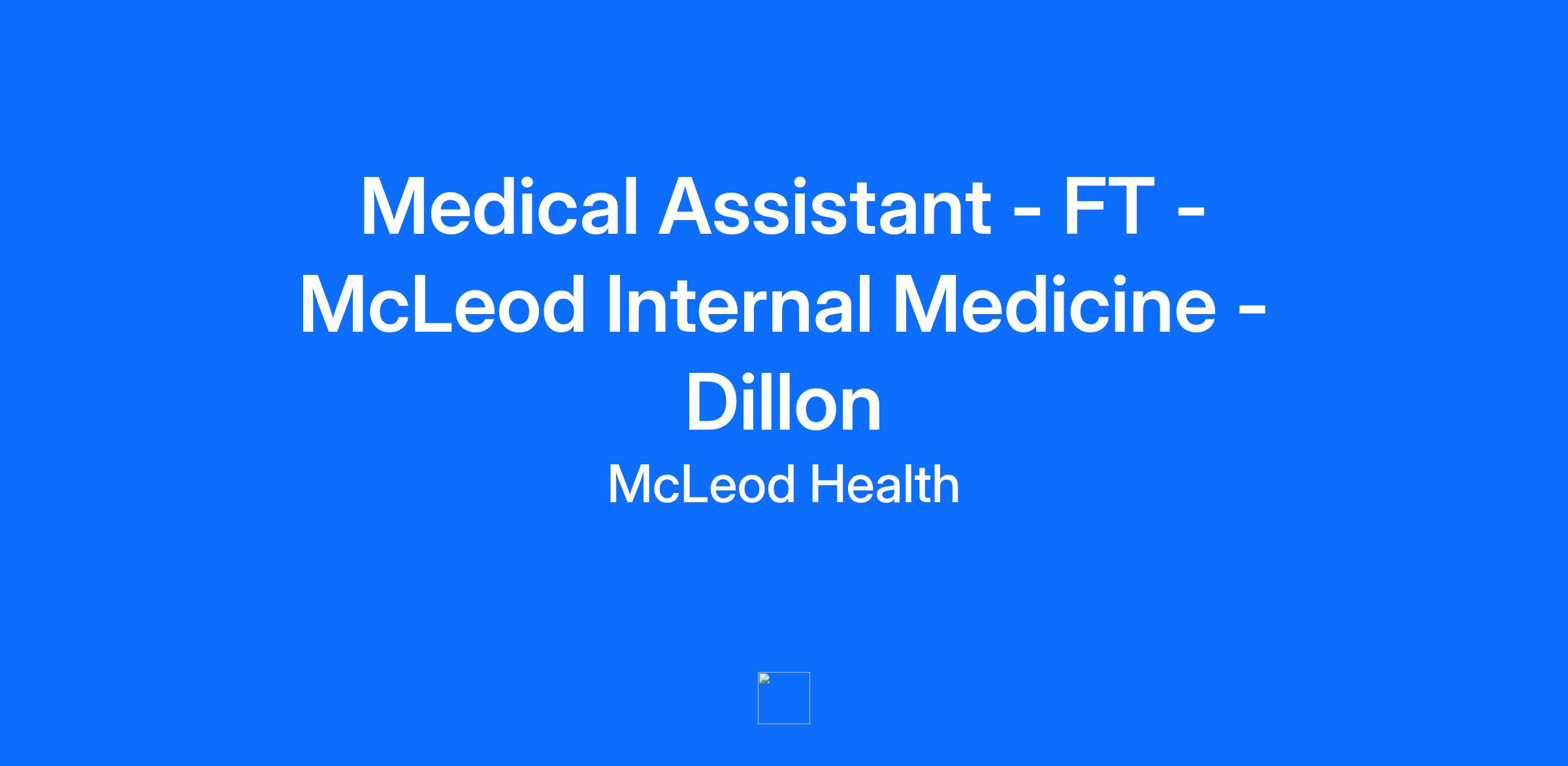 Medical Assistant - FT - McLeod Internal Medicine - Dillon SC