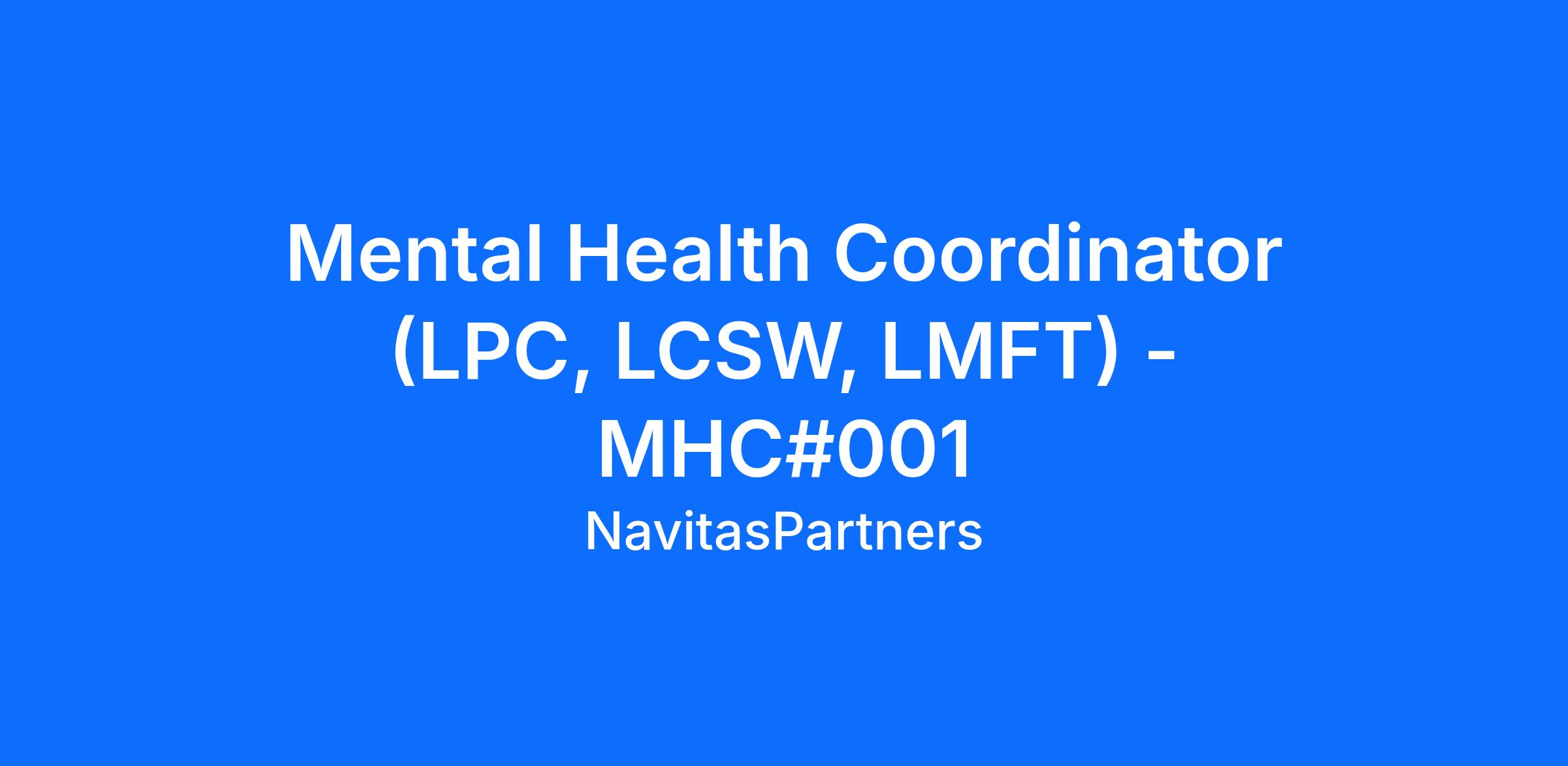 Job Title: Mental Health Coordinator (LPC, LCSW, LMFT)