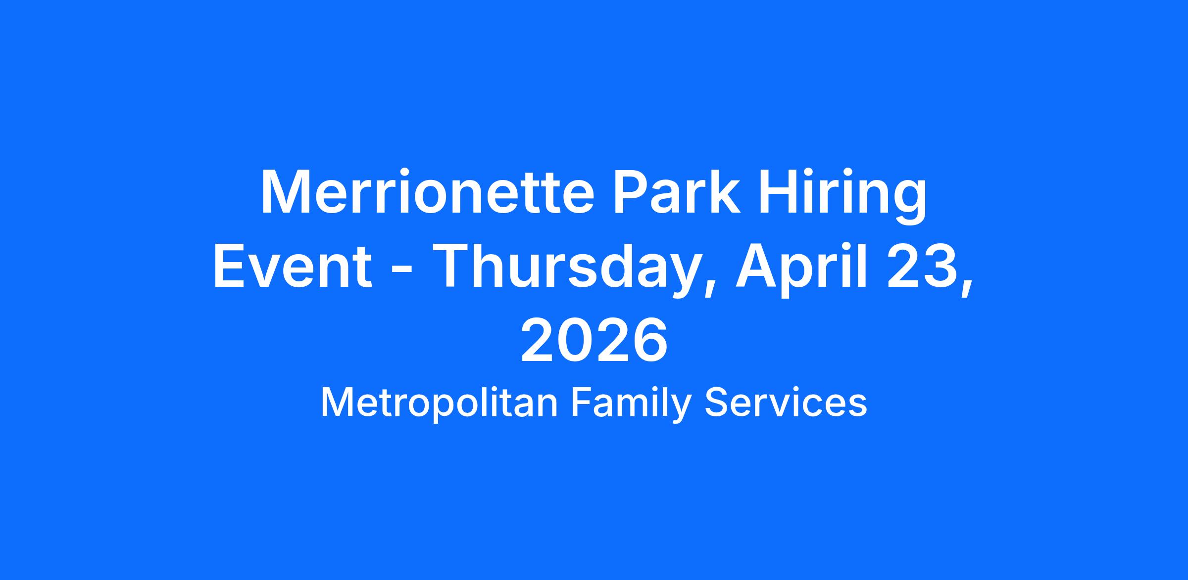 Metropolitan Family Services 'In-person' Hiring Event is Thursday, April 23rd, 2026, from 10:00 a.m. to 6:00 p.m.!
