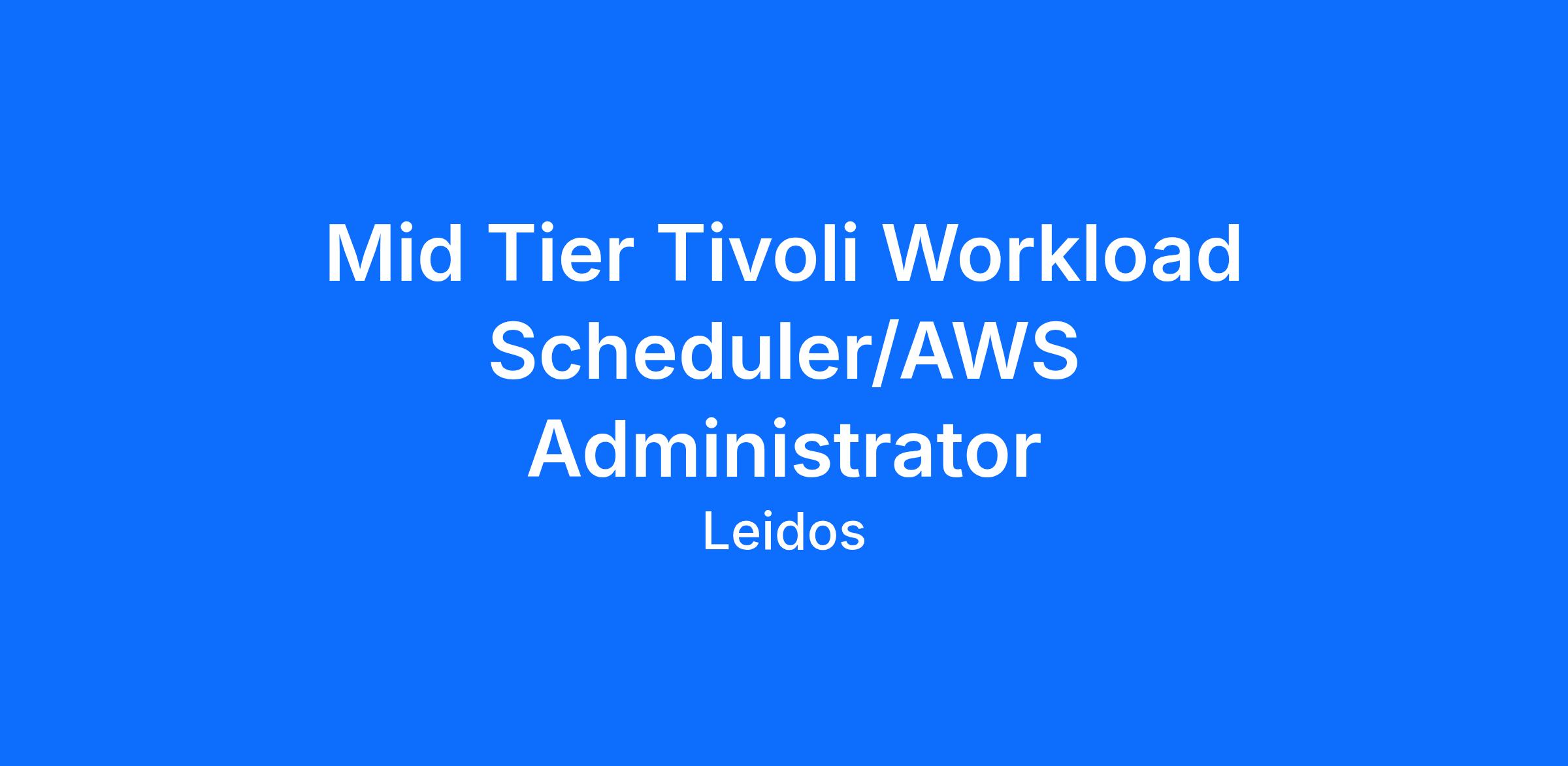 We are seeking a Mid-Tier AWS Administrator to support the day-to-day operations, security, and performance of our AWS cloud infrastructure while managing enterprise-level workload scheduling and automation through Tivoli/IBM Workload Scheduler (TWS/IWS). This role is hands-on and operationally focused, requiring strong troubleshooting skills, disciplined execution, and the ability to support business-critical batch and cloud-native workflows.