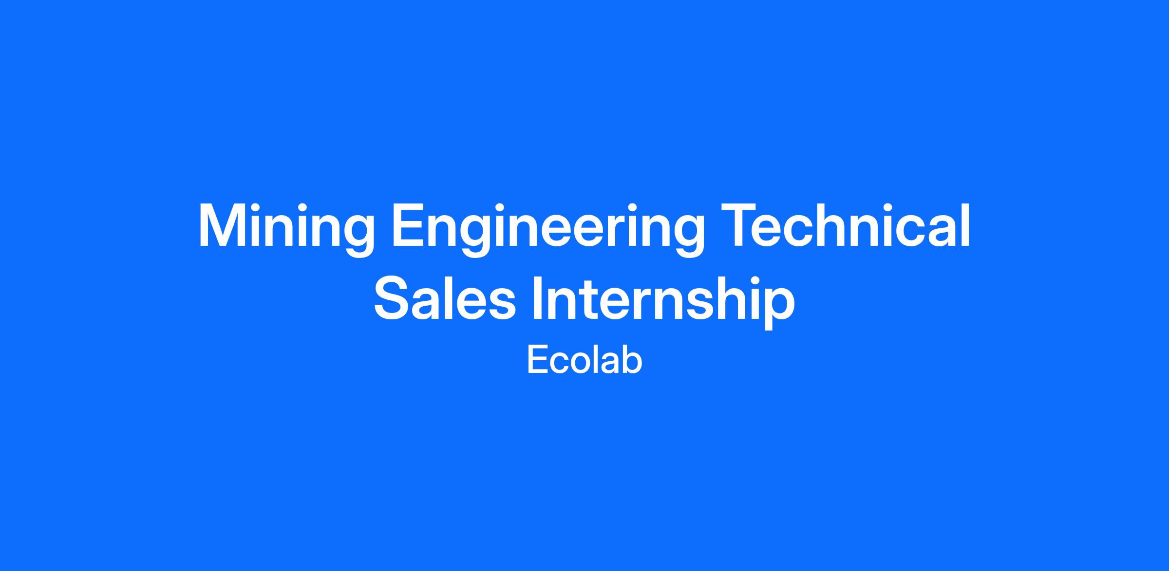 Ecolab is seeking Mining Engineering Technical Sales Interns to join our summer 2026 technical sales internship program. You will help identify and propose solutions to preserve energy and water, minimize our customers’ environmental footprint and increase productivity for customers in the mining industry. You will combine a traditional engineering approach with a consultative sales approach focused on strong account leadership skills and retention of strategic accounts. You will also learn how to build long-term relationships with a large customer base by understanding their key business drivers, providing strategic resolution through hands-on problem solving, and offering new digital technology solutions.