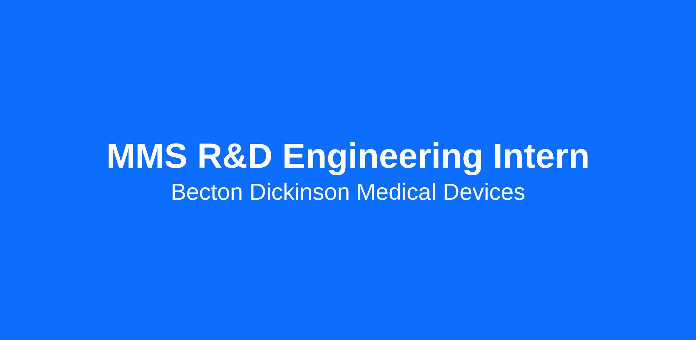 Each intern will have an individual project and the opportunity to develop technical engineering expertise. Through our summer internship, students develop an extensive professional network, learn how to work in an engineering environment, build hands-on laboratory skills, and deliver business presentations showcasing their work. The summer internship program is a great opportunity to gain exposure to the medical device industry and BD’s culture.