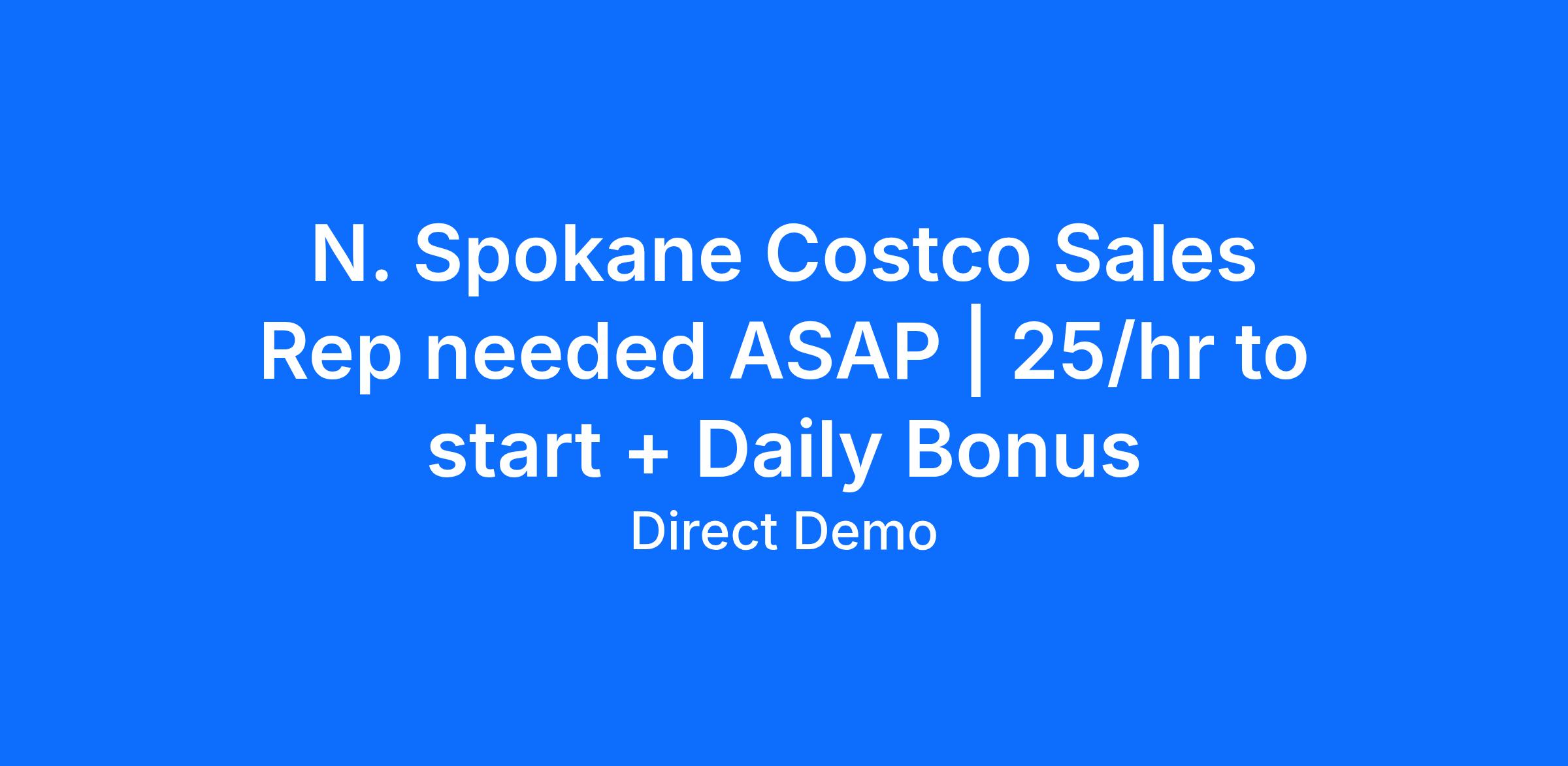 N. Spokane Costco Sales Rep needed ASAP | 25/hr to start + Daily Bonus