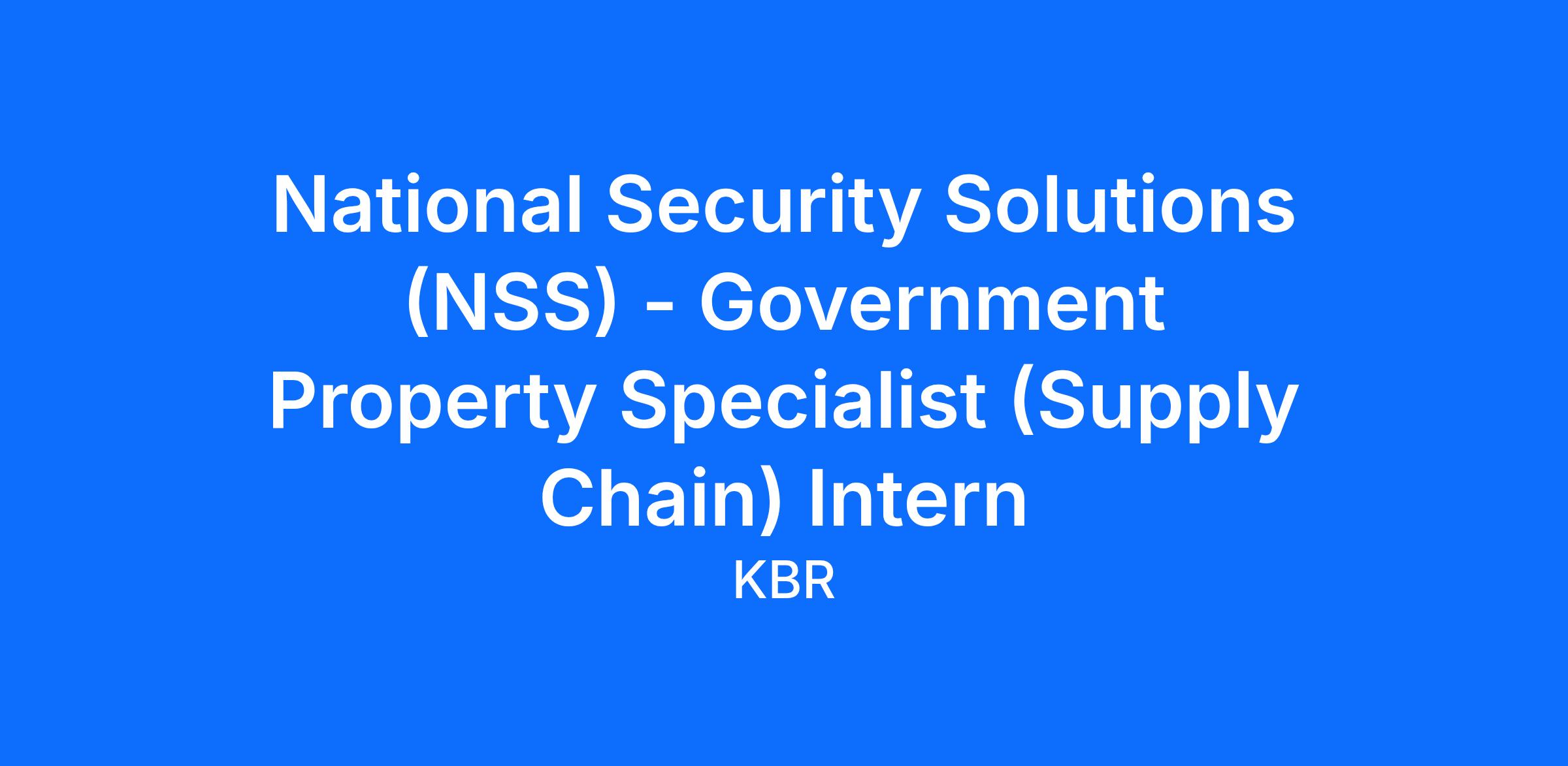 National Security Solutions (NSS) - Government Property Specialist (Supply Chain) InternProject Overview