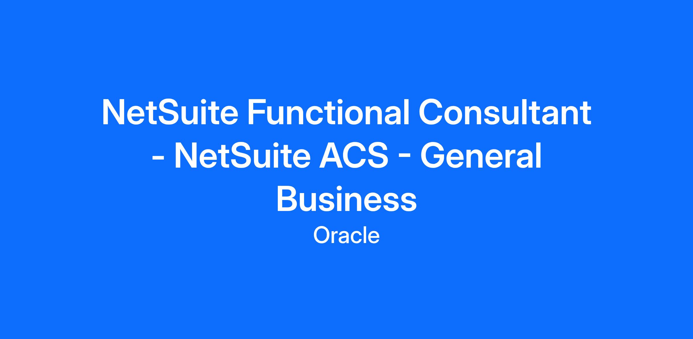 NetSuite ERP Functional Consultant - General Business
