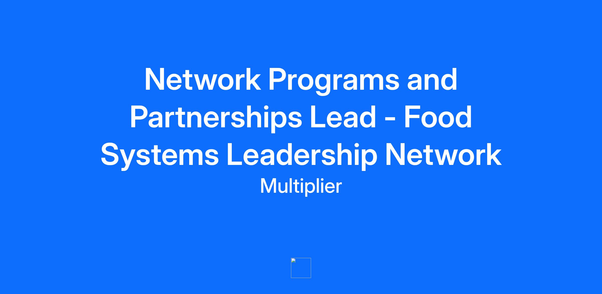 Network Programs and Partnerships Lead - Food Systems Leadership Network